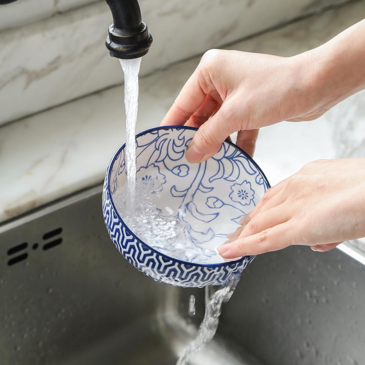 Selamica Ceramic 12 OZ Dessert Bowls Set, Ice Cream Bowls, 4.7 Inch Small Bowls for Snack, Side Dishes, Rice, Microwave Dishwasher Safe, Set of 6, Vintage Blue