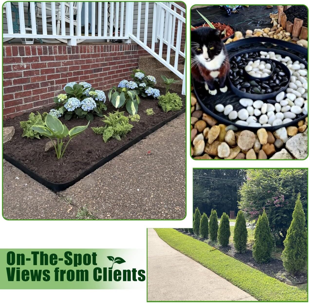 - Please kindly be noticed not to install it on landscape fabric or any garden plastic sheeting, and it is better to cover the bottom of the edging with mulch, soil, stone and etc. after installation in time to better hold its shape.