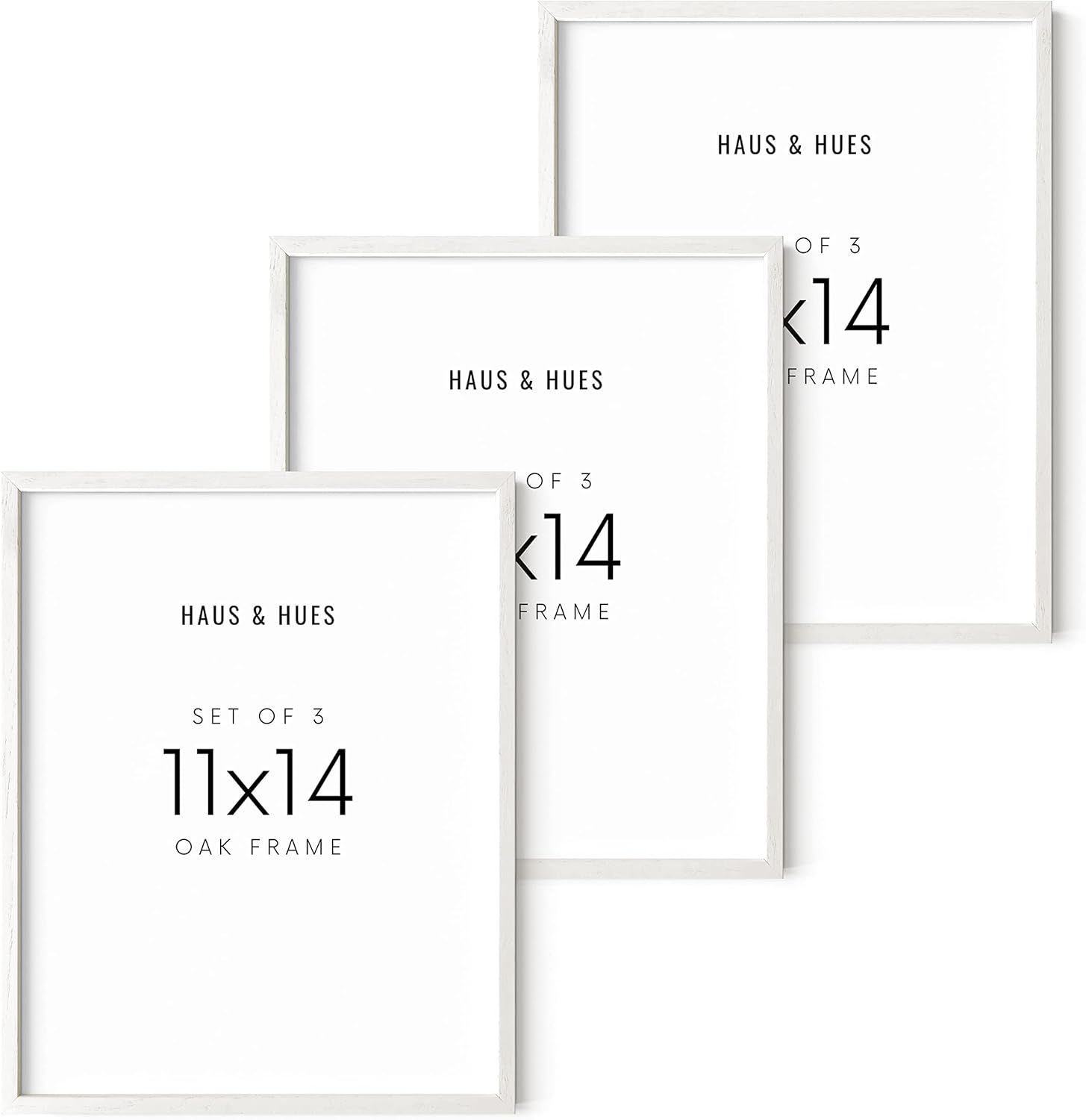 HAUS AND HUES 11x14 White Frames- Set of 3 11x14 Picture Frames White Gallery Wall Frame Set, Wooden Picture Frames for 11x14 Prints, White Picture Frames 11x14 Gallery Wall Frames (White Oak Frame)