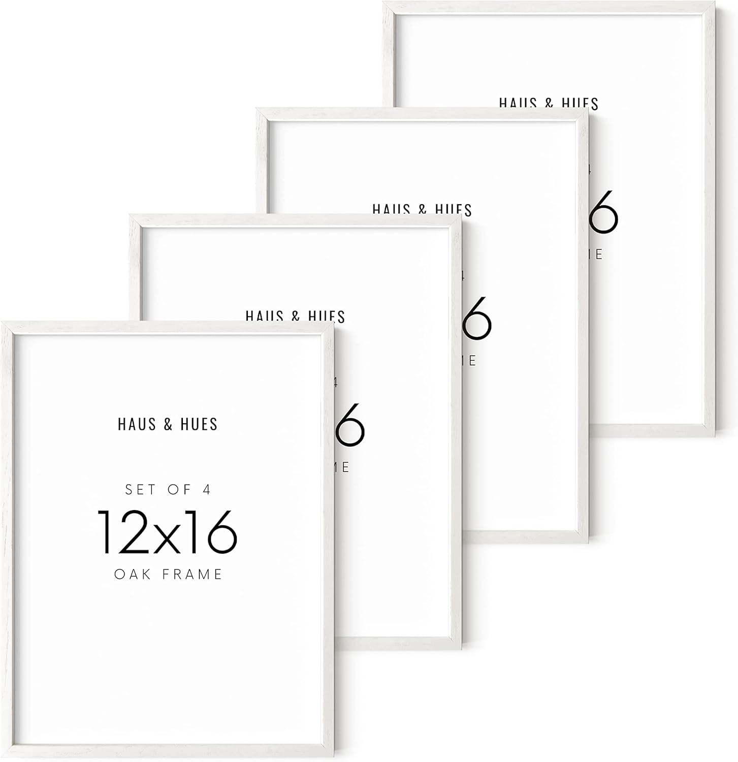 HAUS AND HUES 4-Pack White Oak Frames - 12x16 Picture Frames for Wall Artwork and Posters