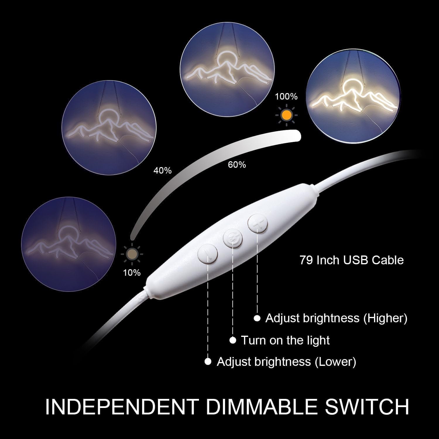 Ulalaza LED Decorative Lights USB Mountains Sunrise Sunset Led Neon Signs Home Decoration Wall Art Holiday Gift Brightness Adjustable 16.5''x11.8''