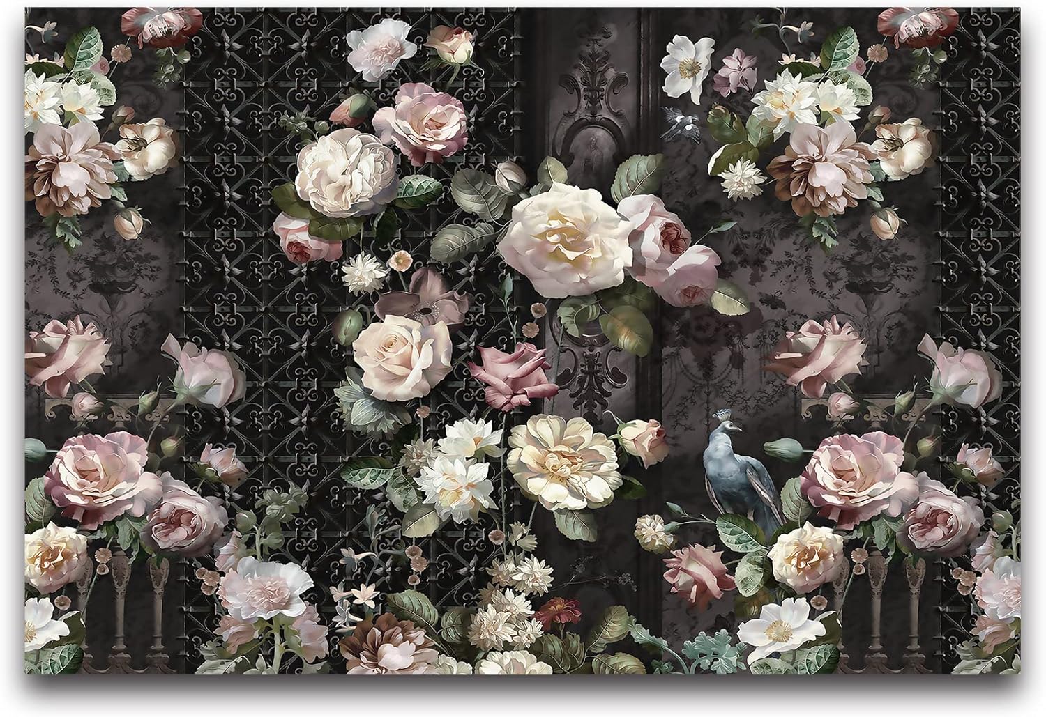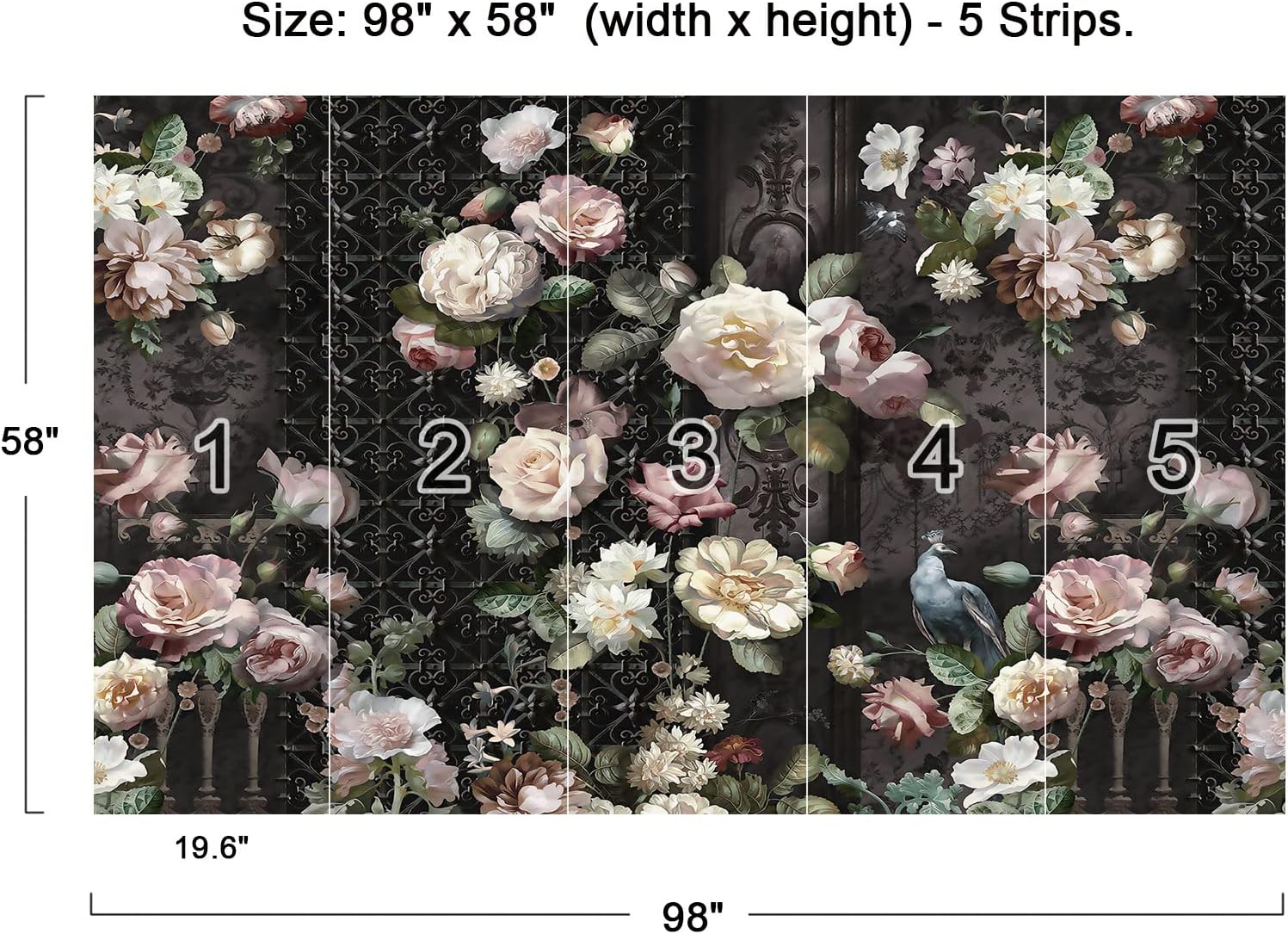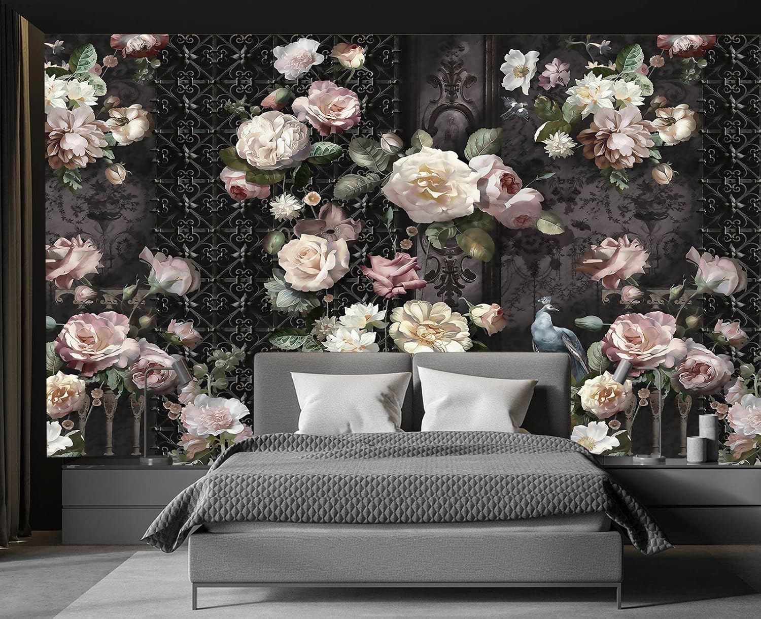 Cliouar-Black Fence Bird Peacock Pink Yellow White Rose 3D Mural Wallpaper Bedroom Living Room Decor Peel and Stick 98" x 58"