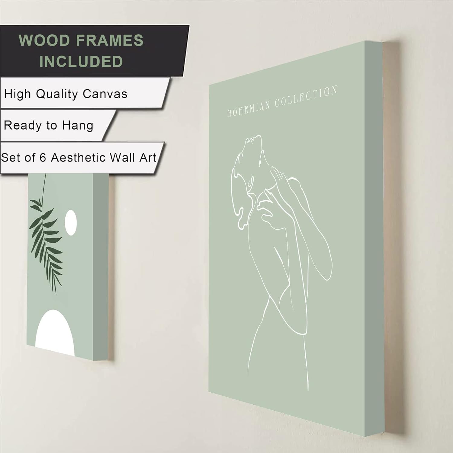 - 【Why Special?】Inspiration comes from the life, all of our aesthetic room decor are designed by independent artist. This boho room decor conbined female line art, boho plants and geometric patterns with light green matching, which interprets the elegance of boho style. Bright tone gives your room an instant make-over, transform your wall into beautiful scenery and promotes your taste and texture of daily life.