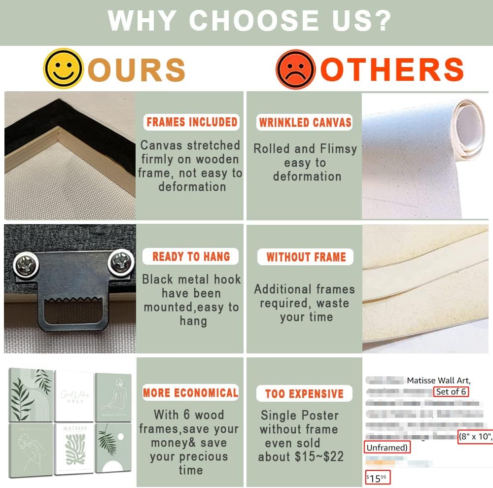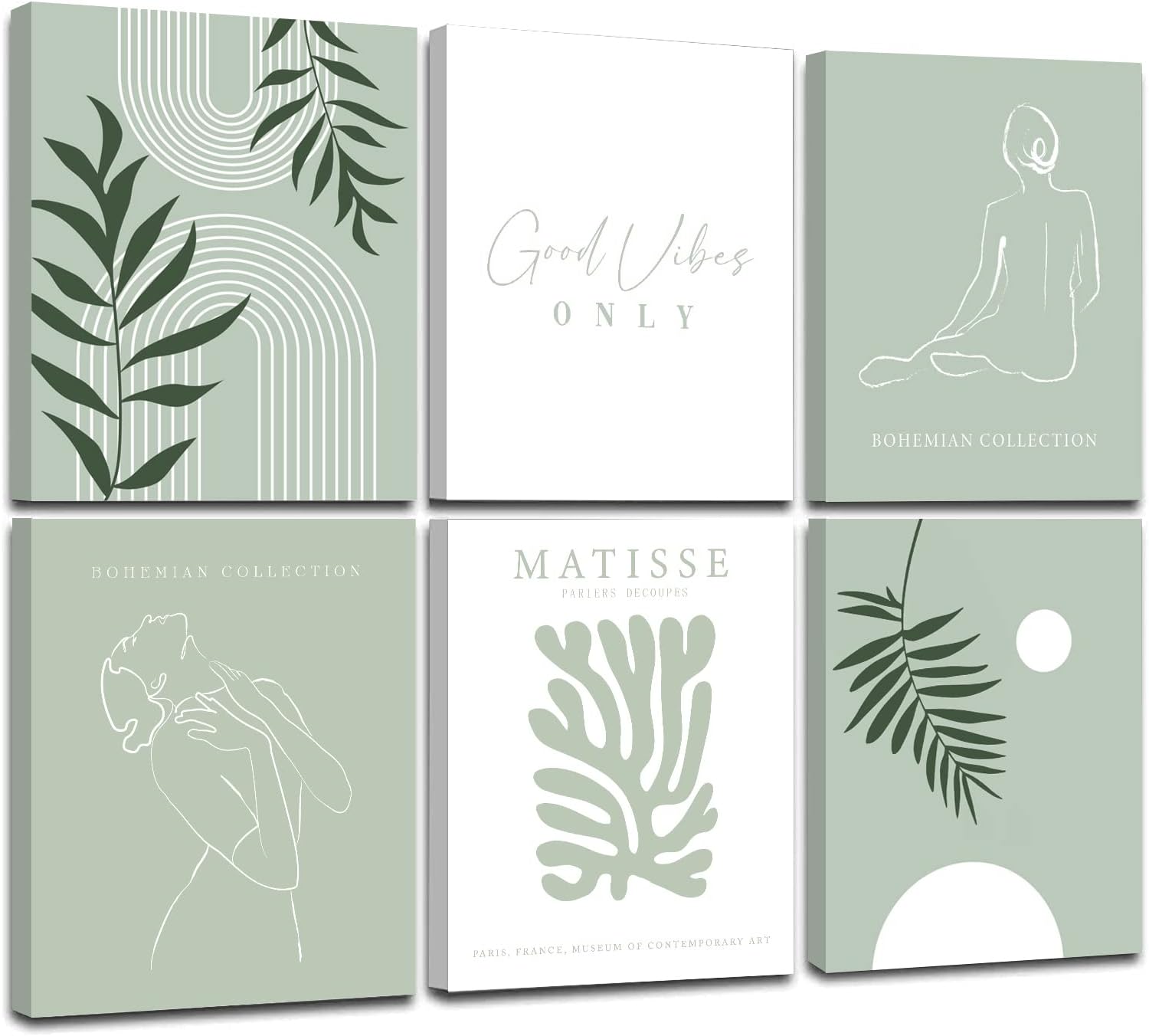 - 【Finest Materials】HD matisse prints on thick high quality canvas, state of the Giclee print technology ensures highest print resolution, clear and vibrant color makes the sage green matisse wall art prints wake up your walls in uncommon way and help you get a lot of compliments. Wrapped on 0.59” thick wood bars, the matisse wall art not easy to deformation. Anti-dirty and anti-fade.