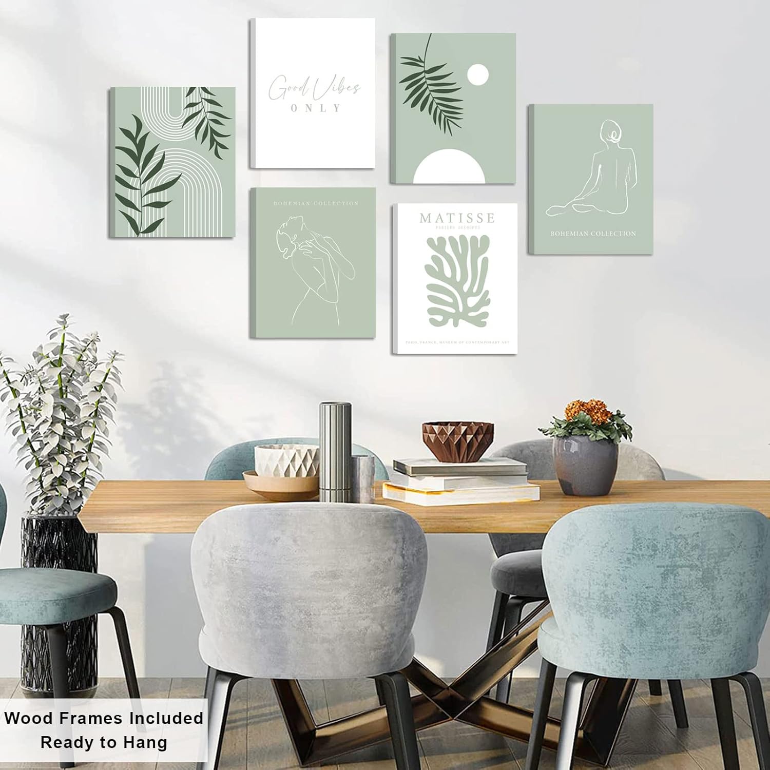 - 【Minimalist Wall Art】You can decorate your walls as you wish, individually or in combination. These sage green room decor can give you unlimited imagination, and it can also let you to relax and immediately make your thinking change faster and more active. Easily add improve the beauty of your home, impressing all guests.
