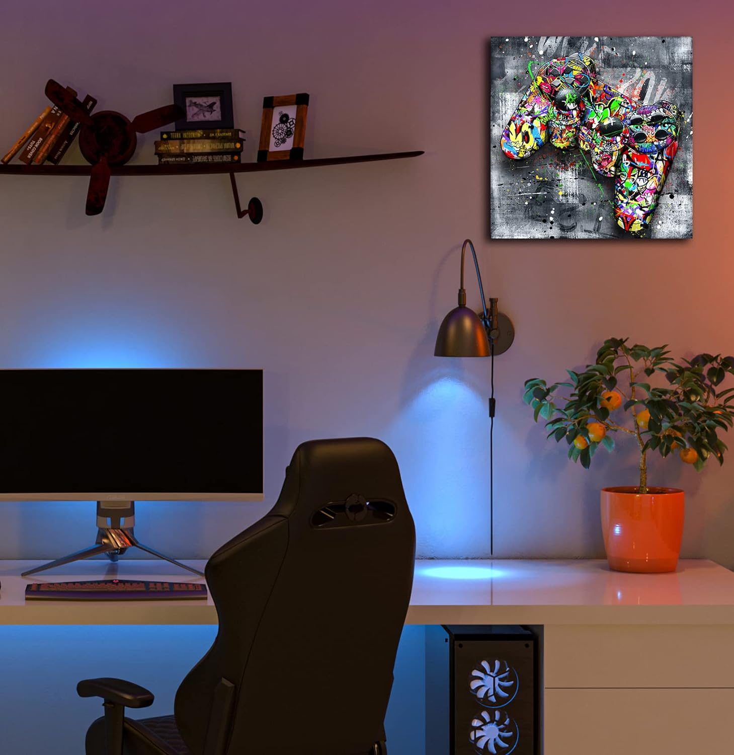 - 【STYLISH CANVAS ART DESIGN】 Looks exactly as pictured,Good idea for home interior walls decor such as wall art for bedroom,guest room, hotel, dining room wall decor and others. It’s a great gift ideal to your friends.Graffiti canvas wall art gaming wall art for teen boys abstract painting pop art modern home wall decor
