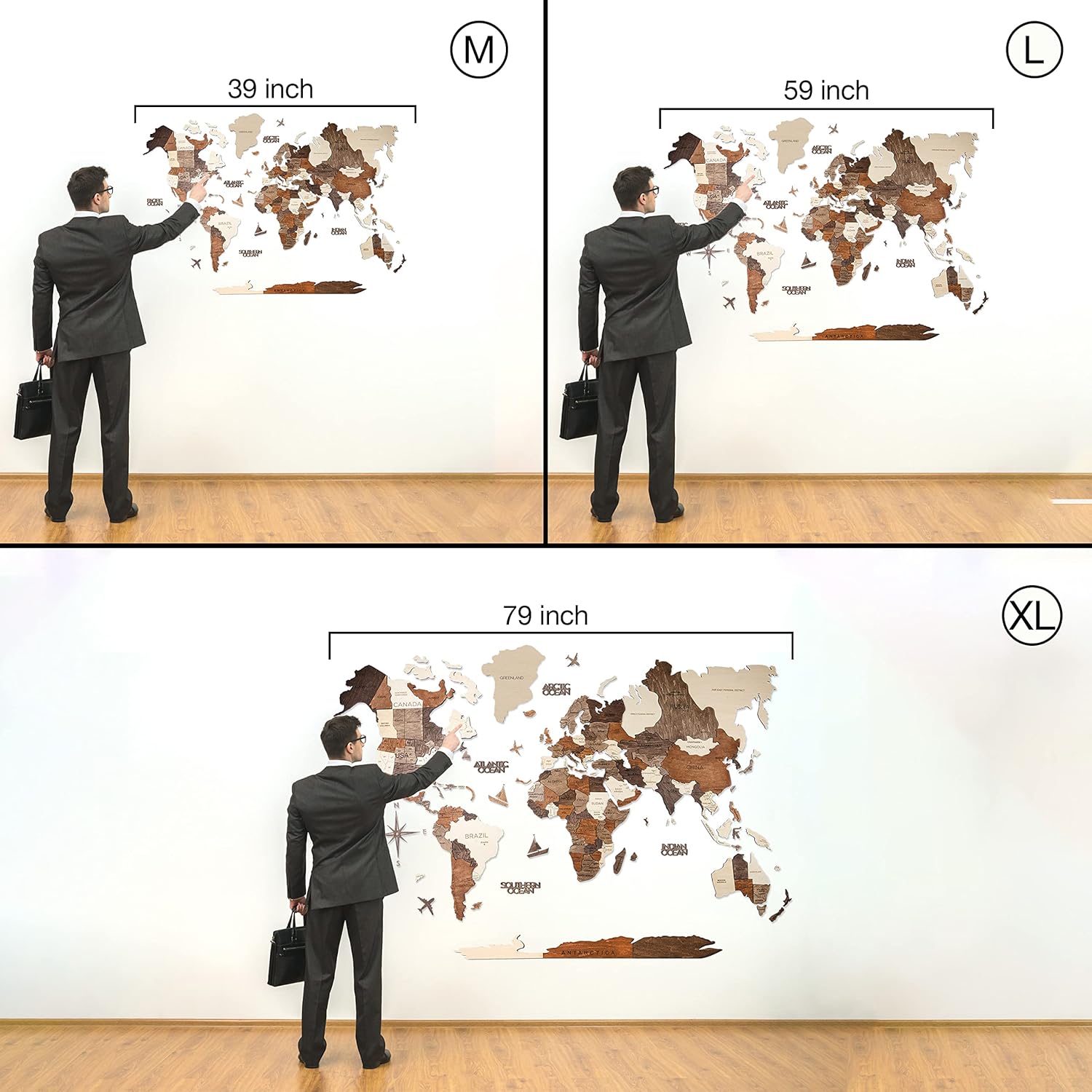 - Premium Quality Construction: This world map wall decor is crafted from superior quality, highly durable birch plywood, available in a selection of 8 colors, 3 sizes and push pins according to your individual needs or preferences.