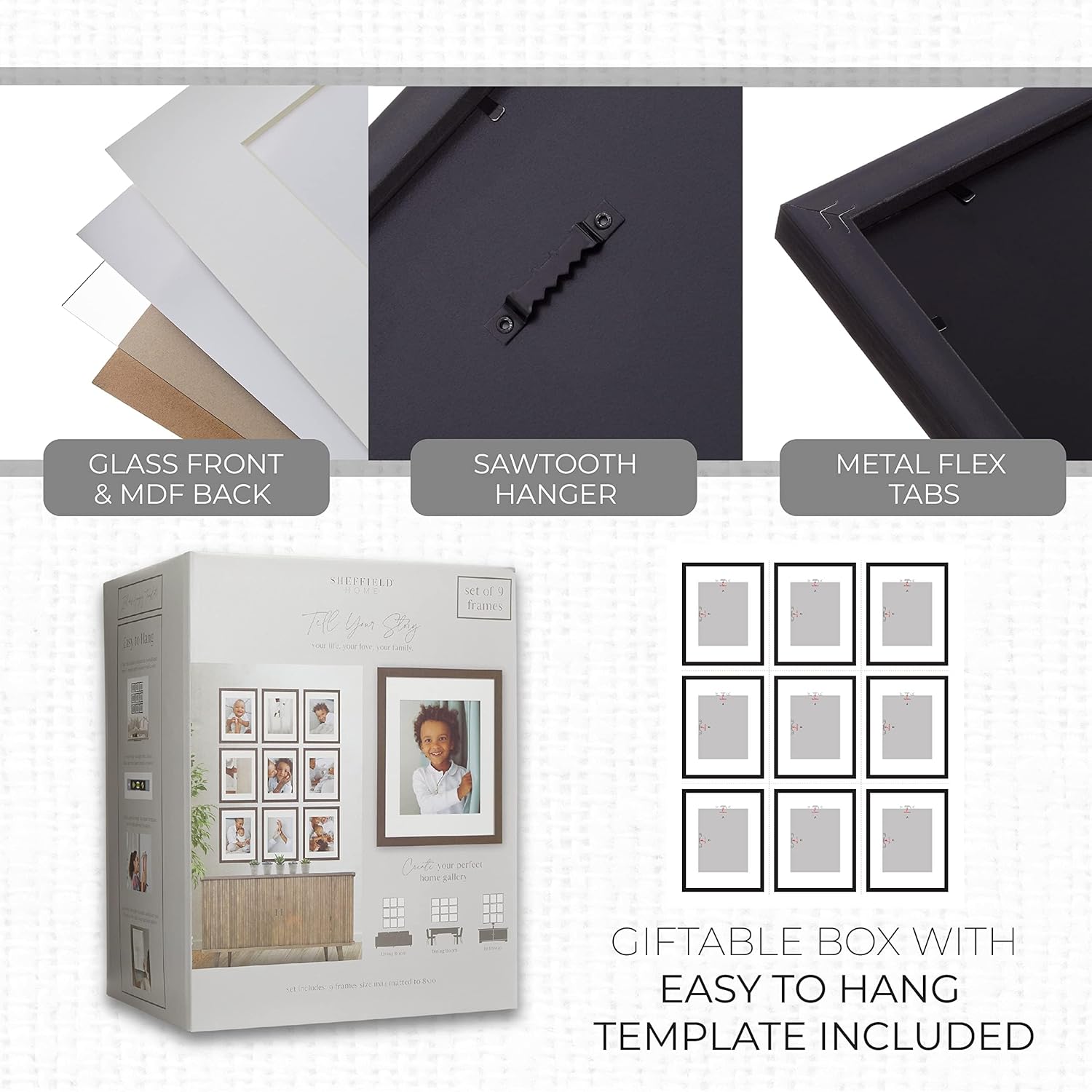 Sheffield Home 9 Piece Gallery Wall Frame Set, 11x14 Inch, Dark Oak