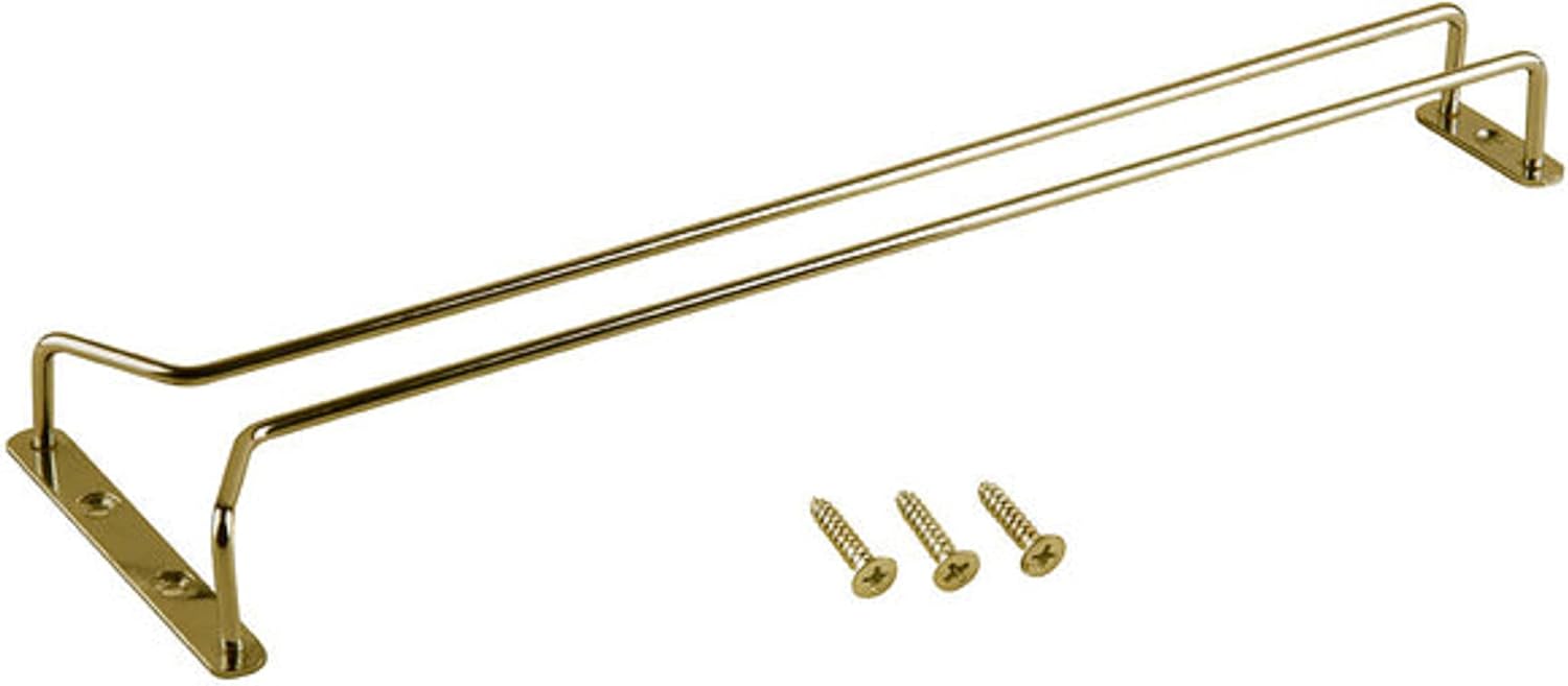 TrueCraftware- 16-Inch Wine Glass Rack Brass Finish Set of 2- Stemware Rack Wire Hanging Rack Under Cabinet Wine Glass Stemware Holder Glass Storage Hanger Organizer for Kitchen and Bar