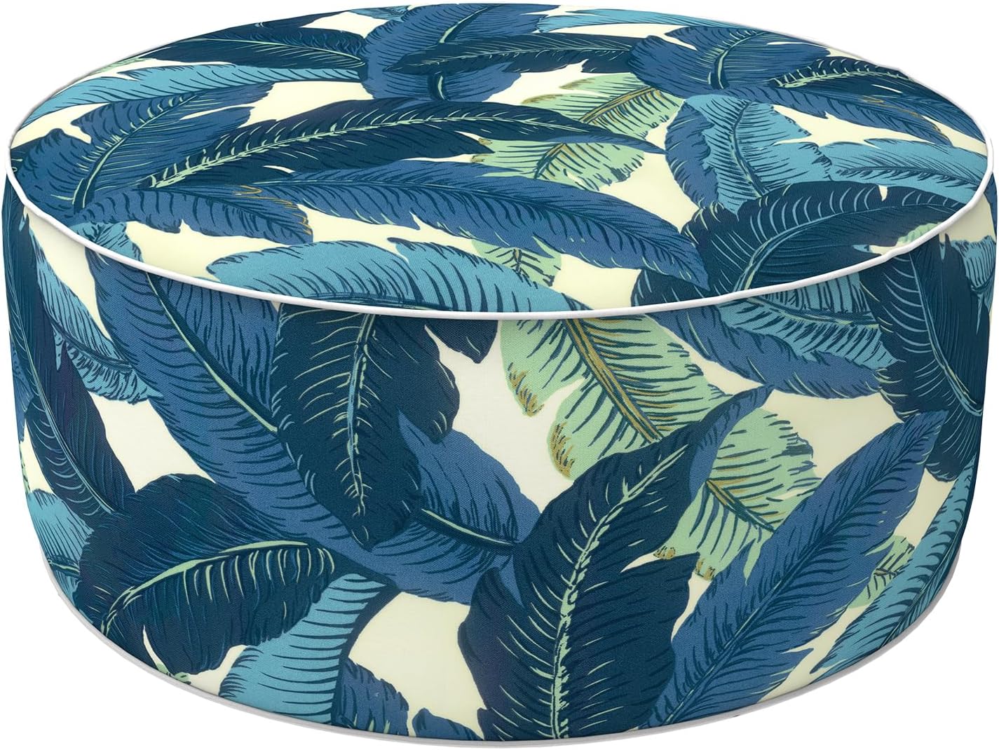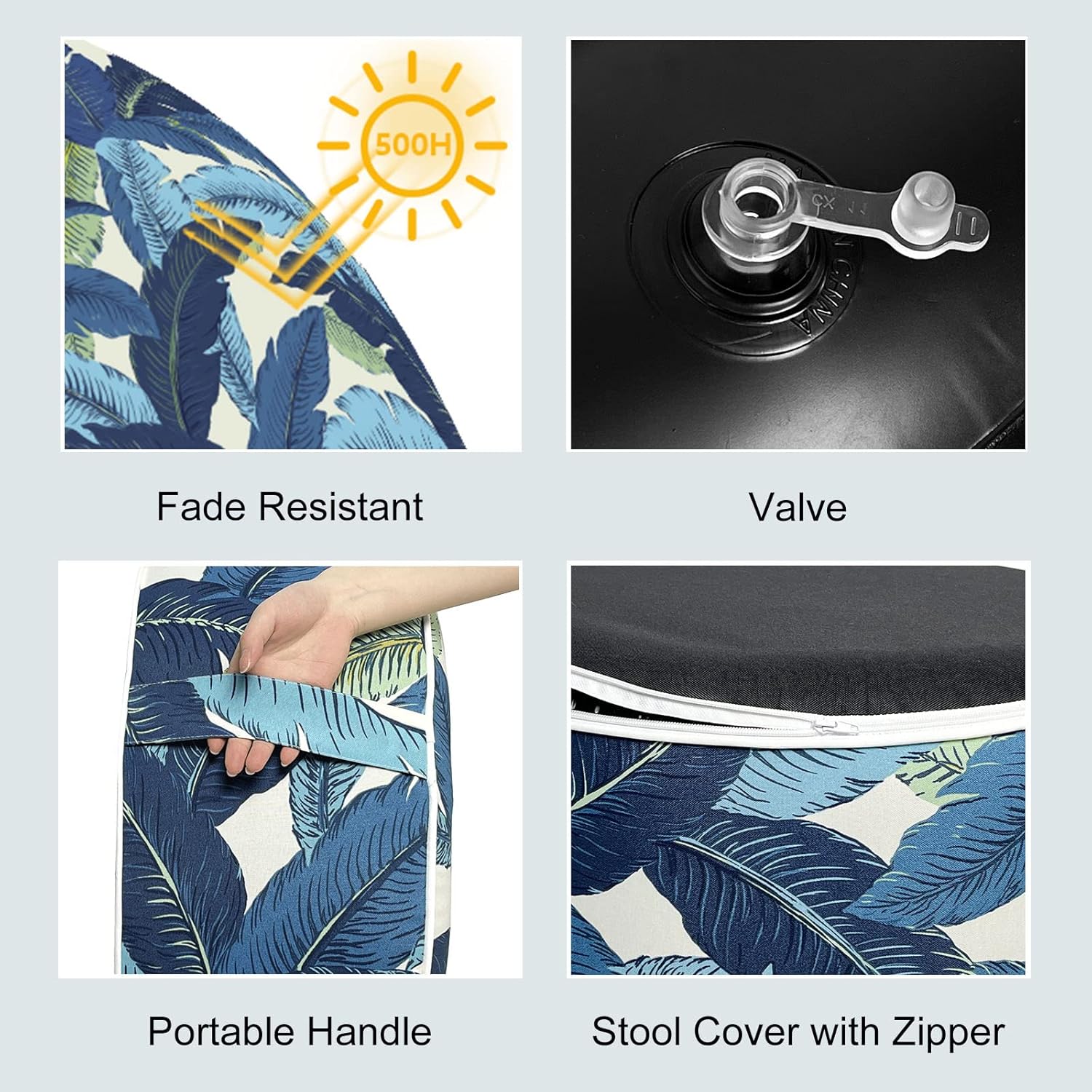 LVTXIII Inflatable Stool Ottoman Footrest with Handle, All Weather Foot Rest, Indoor or Outdoor Use for Home Patio Garden and Camping, D21 x H9, Swaying Palms Blue