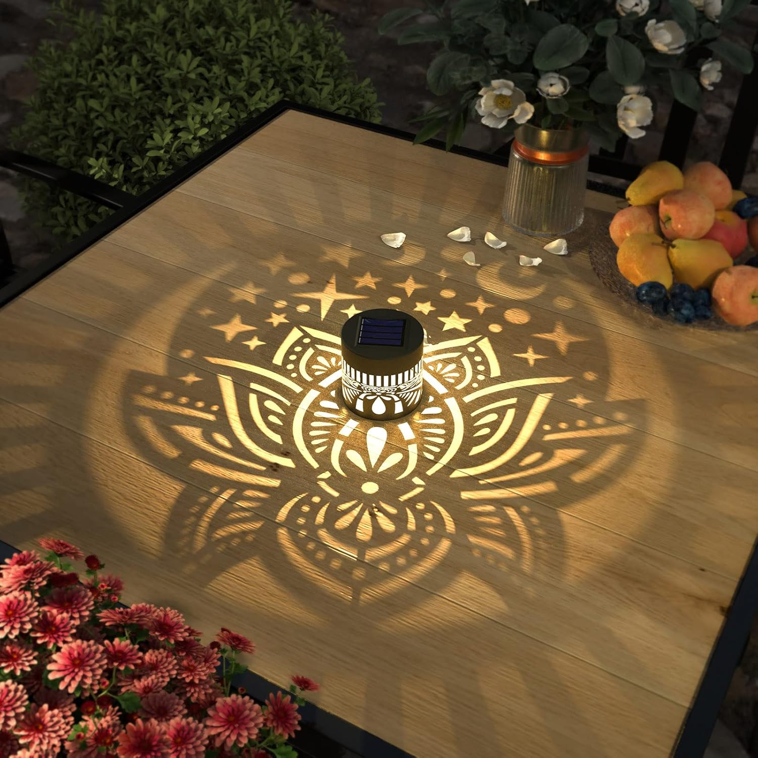 - Good Decoration: 10 lumens of warm yellow light. The small fence solar lights can project a unique and beautiful lotus pattern. In a dim environment, the solar lights can illuminate a corner of the fence or the wall and create a beautiful and warm atmosphere. They are very suitable as holiday decorations and gifts for relatives and friends