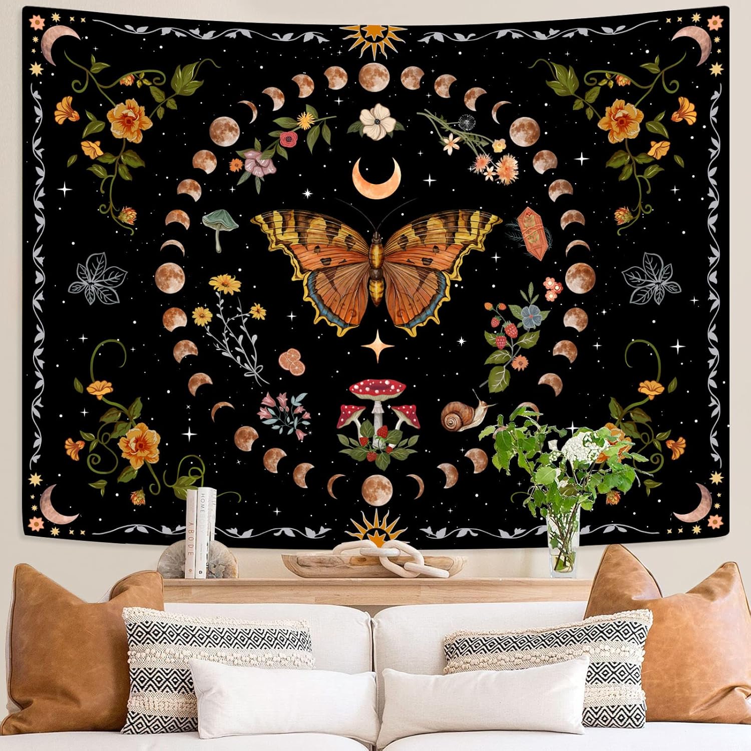 - 🎄【Service】: If you have any problem with thebutterfly moon flower tapestry, please customer service immediately, we will solve it for you. These aesthetic tapestries have three sizes, 48'' wide × 36'' high, 60'' wide × 44'' high, 80'' wide × 60'' high.