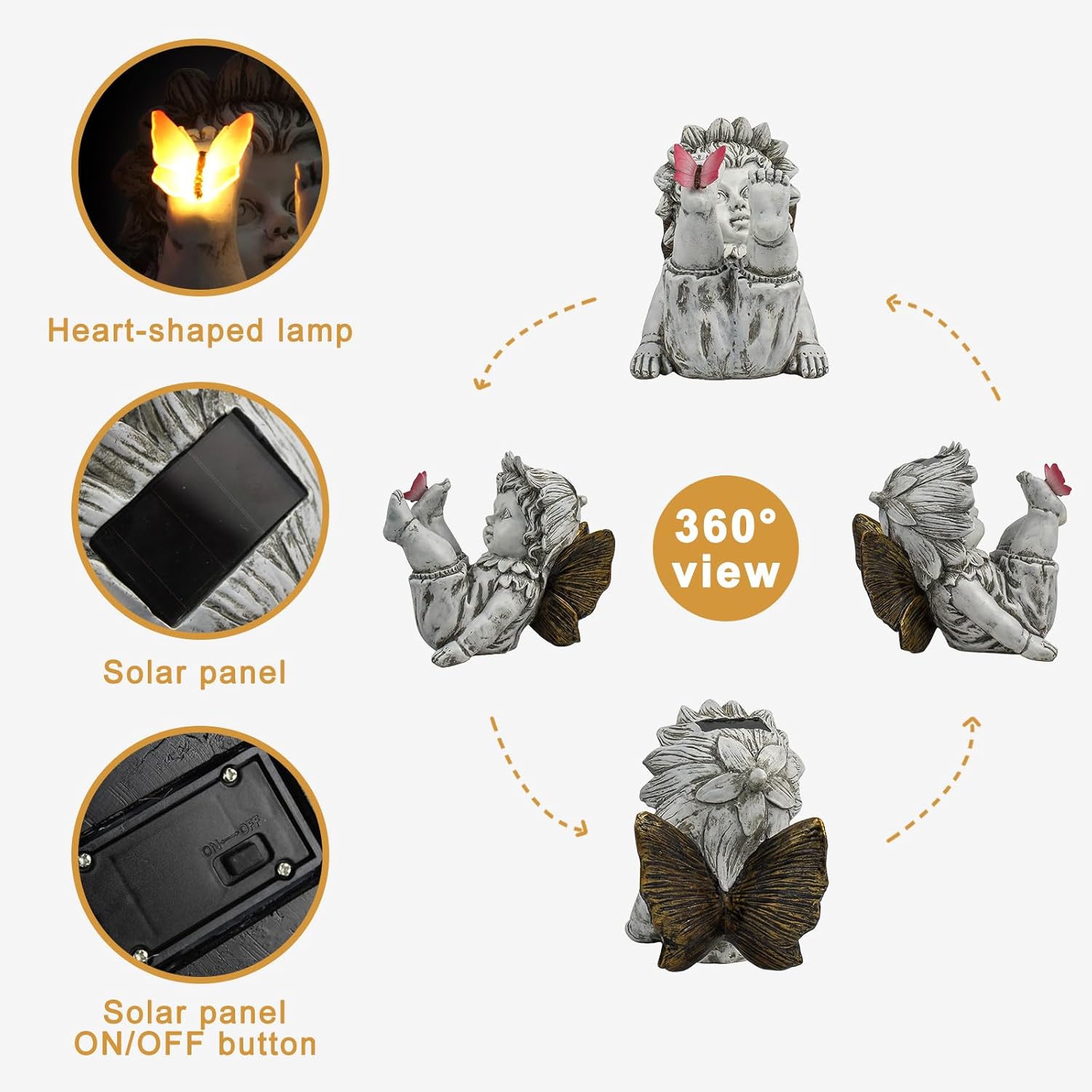 - 【AUTO-ON SOLAR LIGHT】This solar flower fairy statue is very easy to install and use. simply turn on the switch and place it under the sunlight and let them charge during the day. they will automatically turn on at night to provide a warm and welcoming glow for 8-10hours.