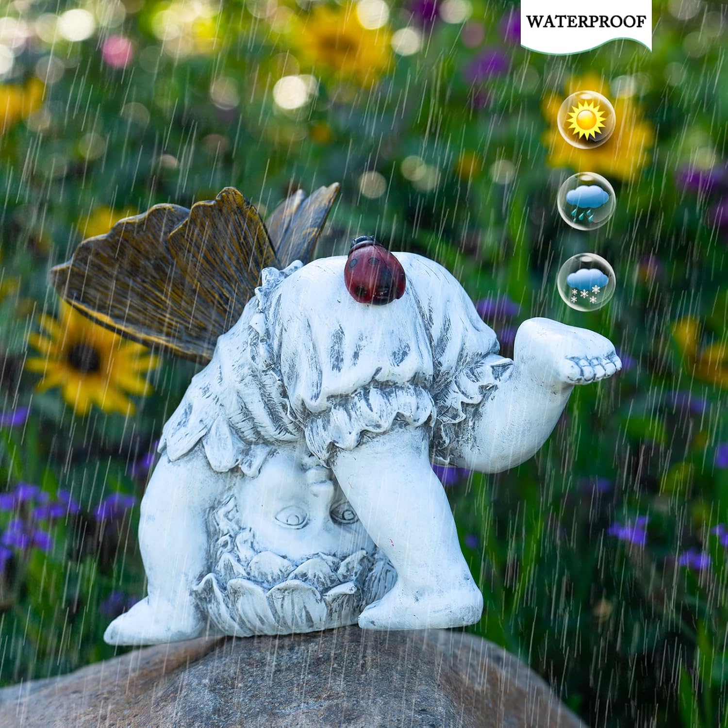 - 【PERFECT GIFT IDEA】This cute fairy statue is 8.98*4.88*7.20 inches in size and it' s well packaged in box, makes a perfect birthday/mother’s day/Christmas gift for girl friend,mom, pals or any garden enthusiast.It will light up their yards and bring a smile to their faces.