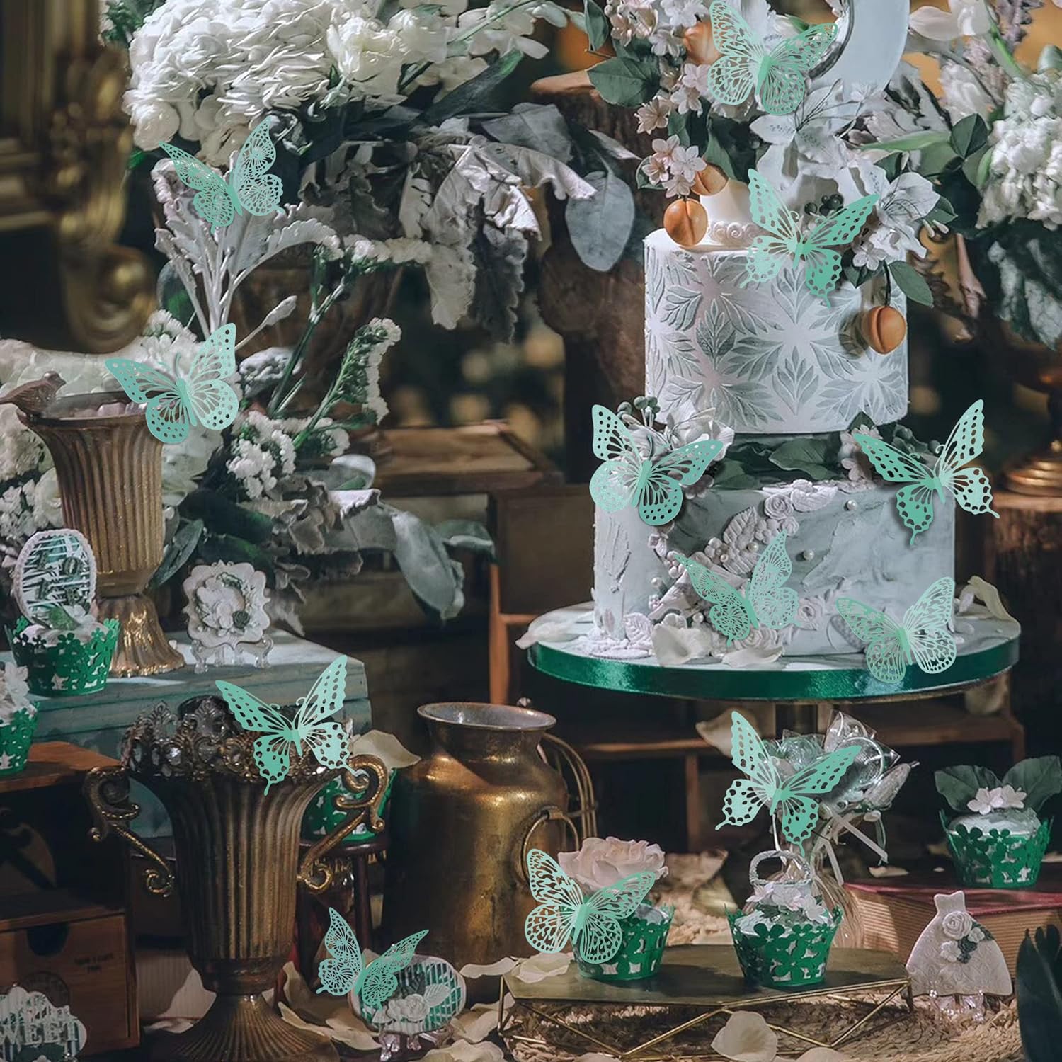 SAOROPEB 3D Butterfly Wall Decor 48 Pcs 4 Styles 3 Sizes, Butterfly Birthday Decorations&Butterfly Party Decorations&Butterfly Cake Decorations-Removable (Pale Turquoise)