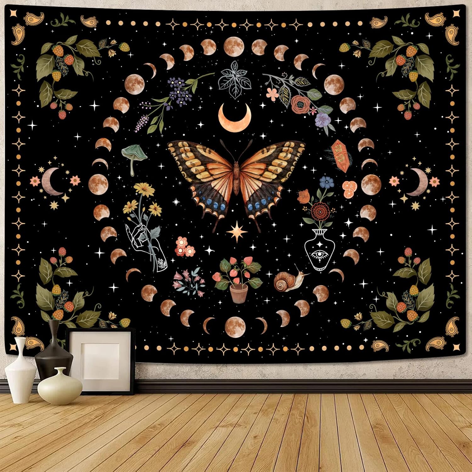 - 🎄【Practicality】: This tapestry is incredibly versatile. Whether you are reading, practicing yoga, or simply relaxing, the tapestry creates a serene and inspiring atmosphere that complements the mood perfectly. It truly enhances the overall experience of being in the space. This butterfly moon flower tapestry can be used as bedspread, beach blanket, beach scarf, picknick blanket, tablecloth, bed sheet, picnic mat, photography background, etc.