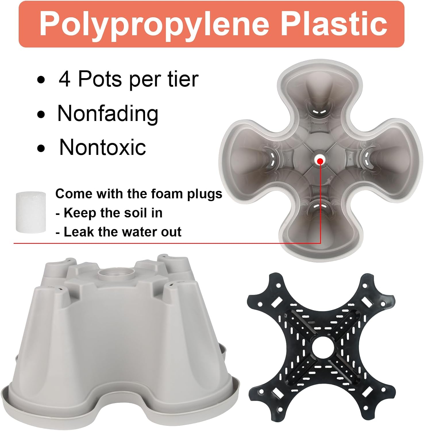 DUNCHATY Stackable Planter with Removable Wheels and Tools, Garden Planting Tower Planters, Indoor Outdoor Gardening Pots - 7 Tier Vertical Garden Planter