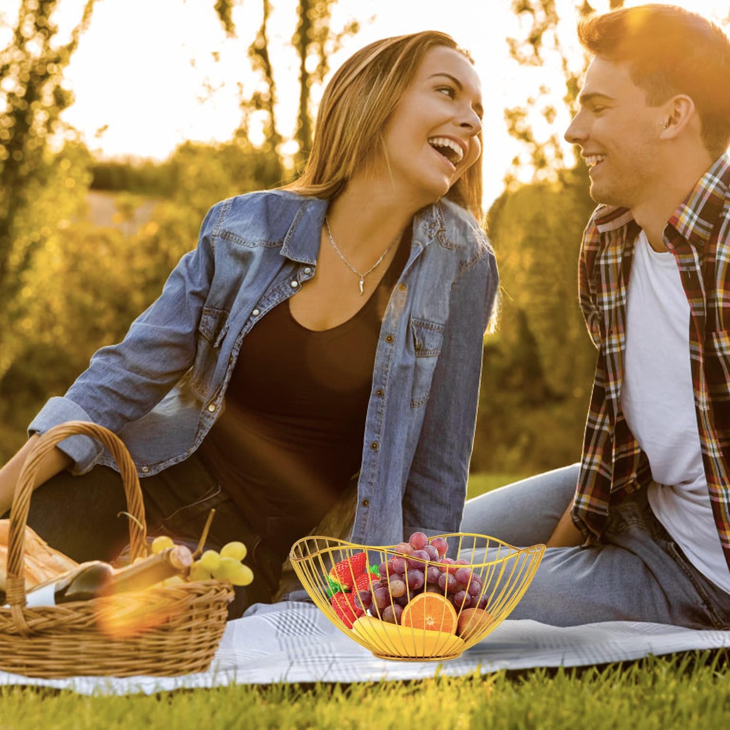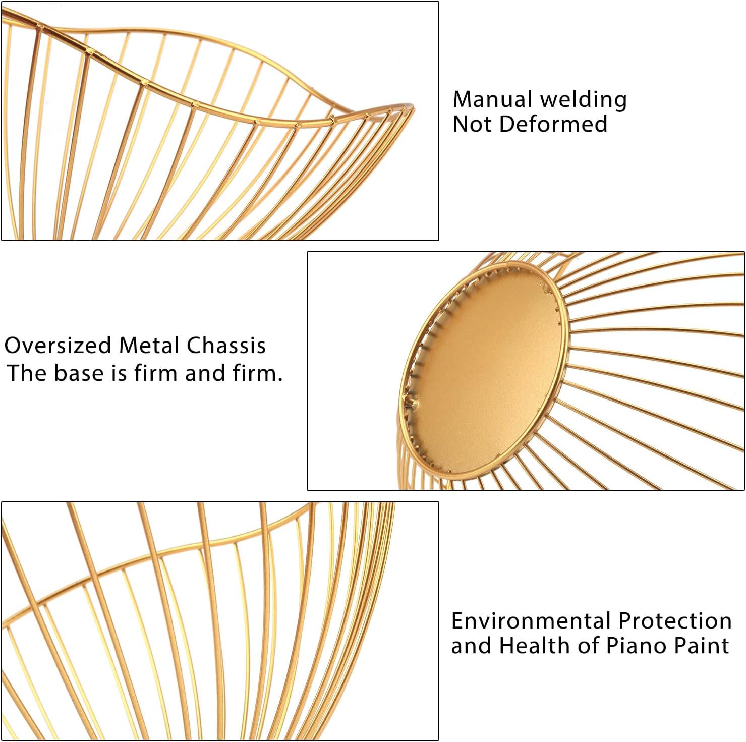 Metal Wire Fruit Basket, Gold Fruit Bowl for Kitchen Counter, Fruit Holder Stand Storage Baskets for Countertop, Home Decor, Table Centerpieces, Vegetable Bowls for Fruits, Veggies, Snacks (Gold)