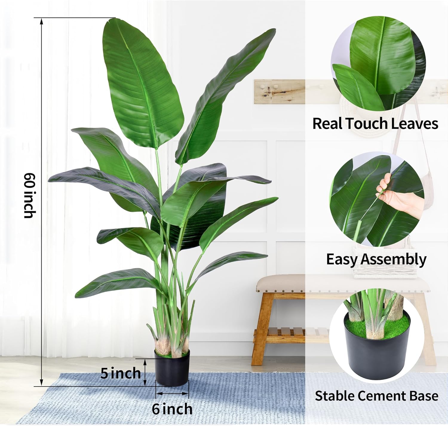 - 【Three Size Available】Our artificial bird of paradise tree have three size available;4ft、5ft&6ft,6ft faux plants with 13pcs real touch leaves, 5ft faux plants with 10pcs real touch leaves ,4Ft faux plants with 9pcs leaves.you can choose different sizes of fake floor plants to decorate your house.