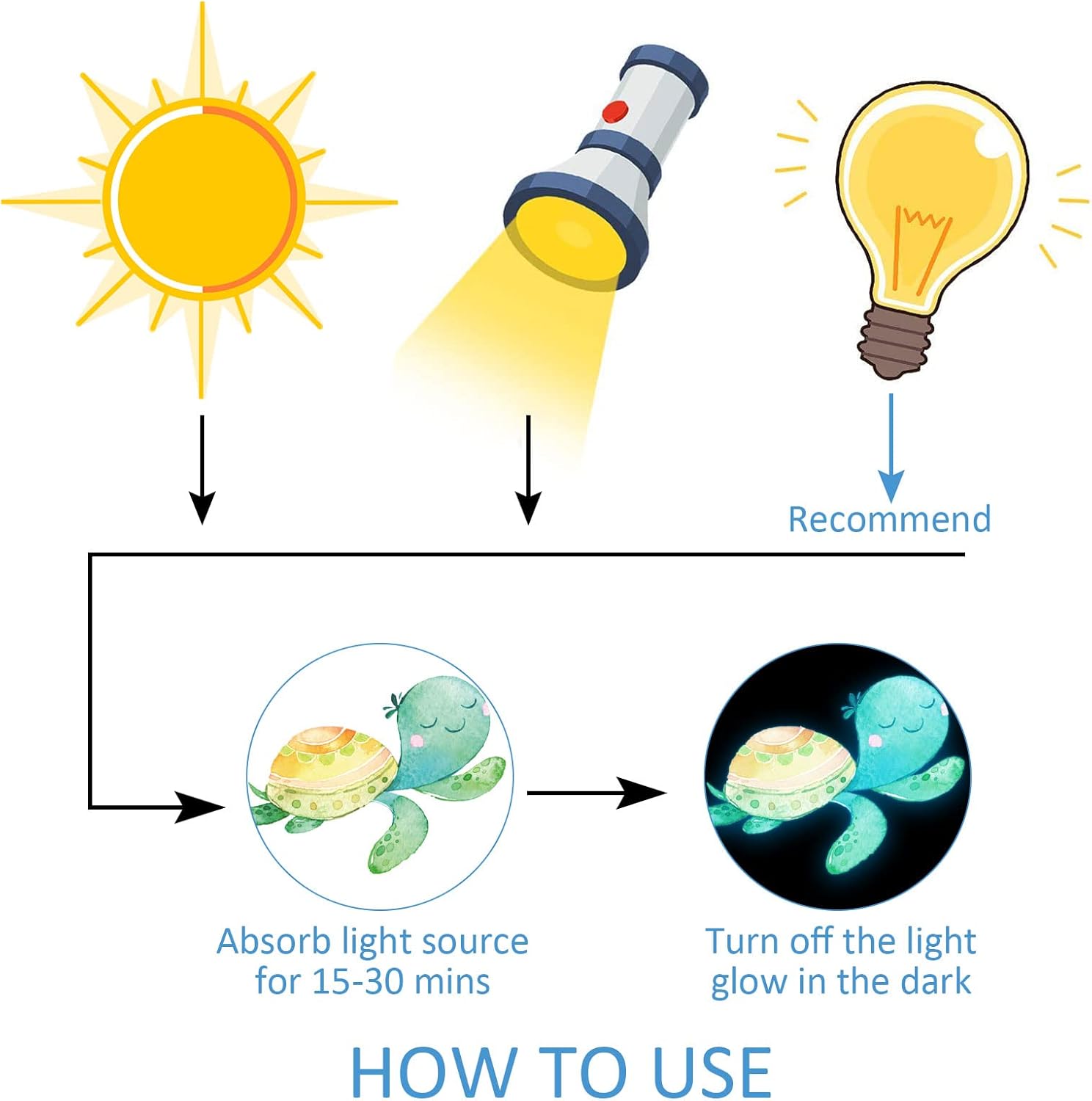 - 🐙【Has Very Good Night Light Effect】The luminous mermaid wall decal not only looks beautiful in the daytime, but also is easy to see at night because it has a very good luminous effect and can absorb light energy during the day or when there is light. Then it emits brightness in a dark environment.because the stickers need to absorb light before glowing.