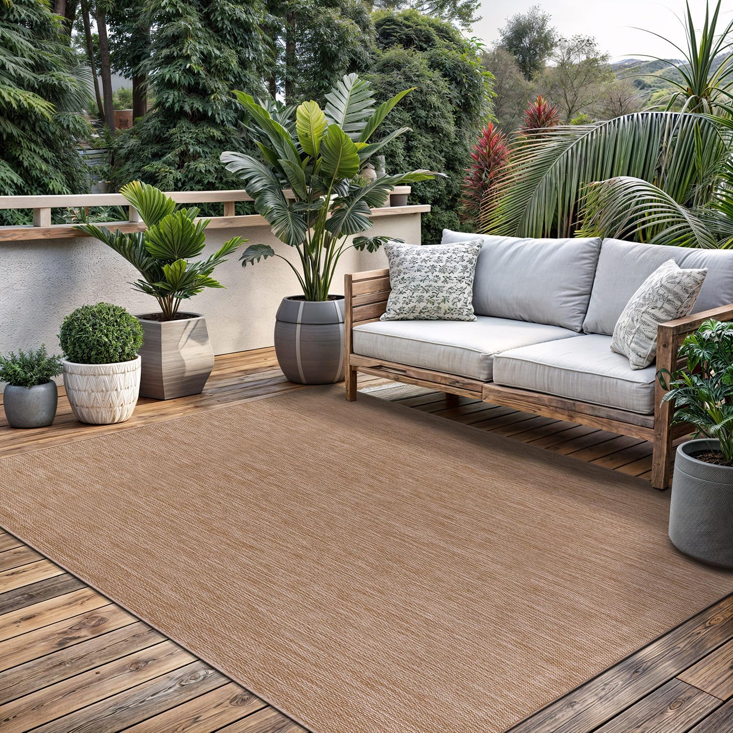 Washable Indoor Outdoor Rug 8x10 Weather Resistant Area Rugs Modern Solid Jute Rug for Porch Deck Balcony Backyard Patio Outside Carpet (8 X 10 Jute Beige)