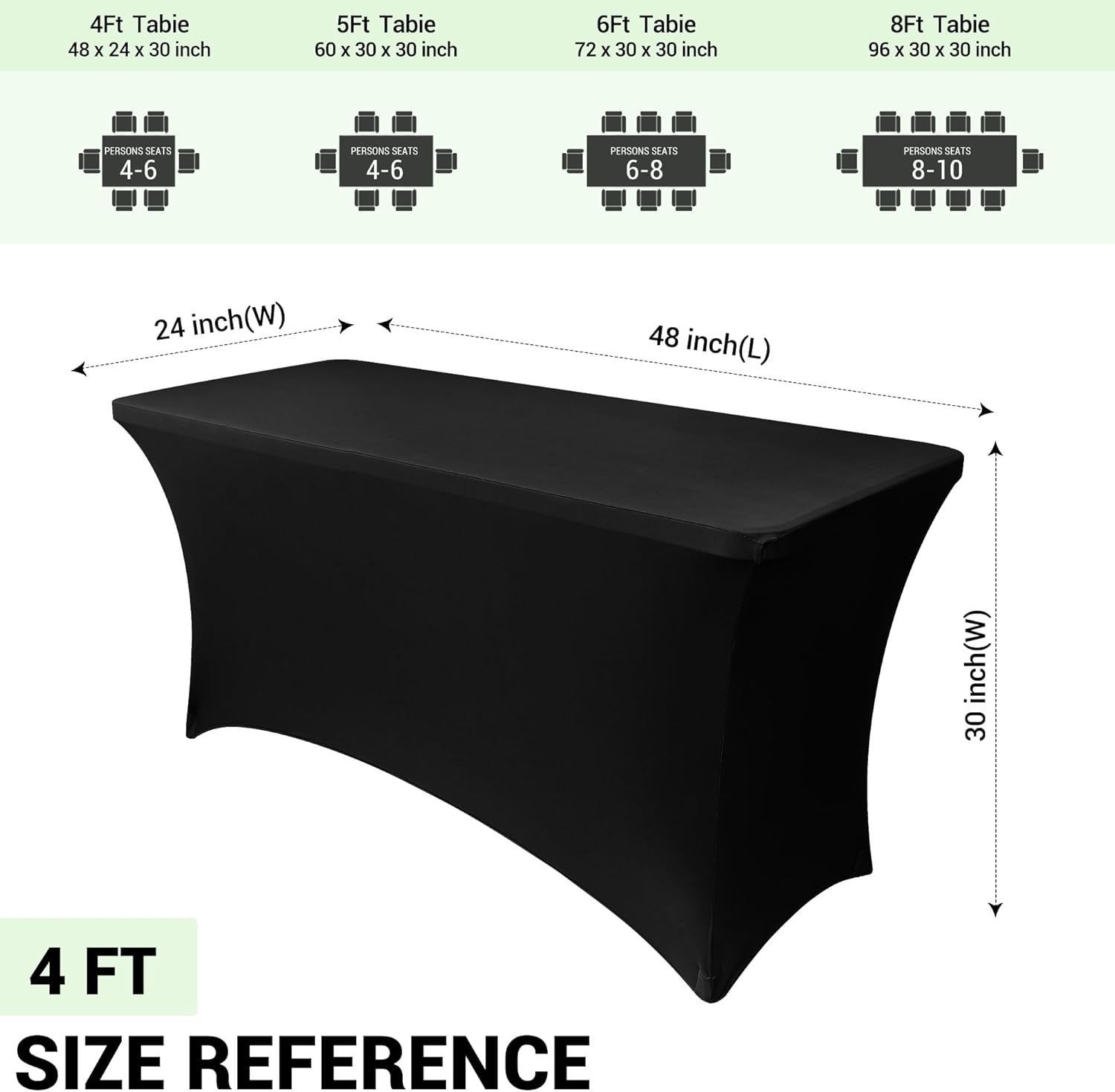 Obstal 4ft Stretch Spandex Table Cover for Standard Folding Tables - 2 Pack Universal Rectangular Fitted Tablecloth Protector for Wedding, Banquet and Party, Black