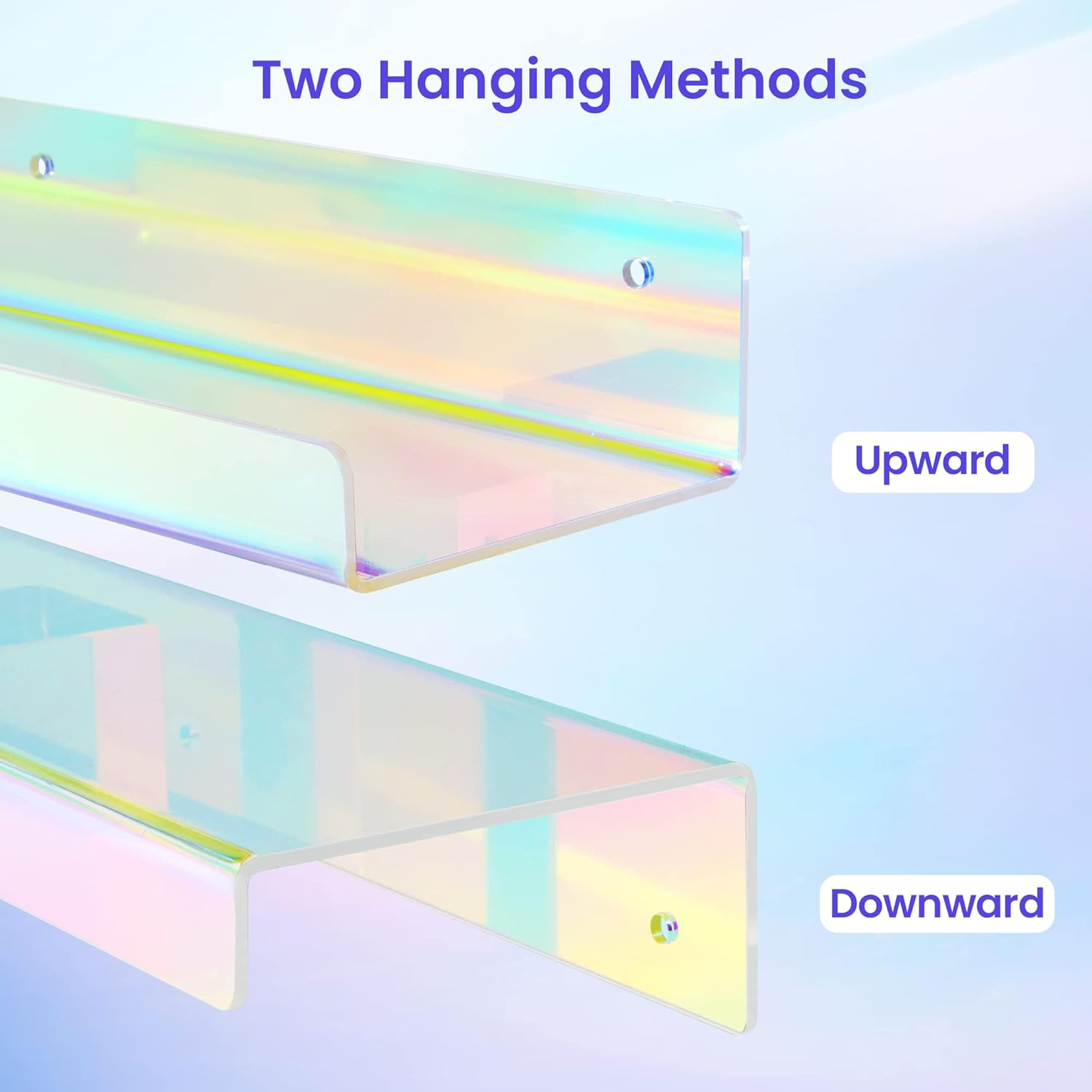 upsimples Acrylic Shelves for Wall Decor, 15" Display Shelf for Perfume, Skincare, Nail Polish, Wall Organizer for Bathroom, Bedroom, Living Room, Playroom, Kids Bookshelf, Iridescent, 4 Pack