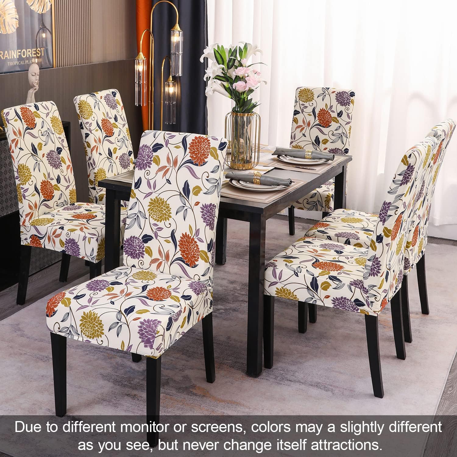 JQinHome Pattern Chair Covers for Dining Room Set of 4, High Stretch Removable Washable Parsons Chair Slipcover for Home Party Hotel Wedding Ceremony (Flower,4PCS)