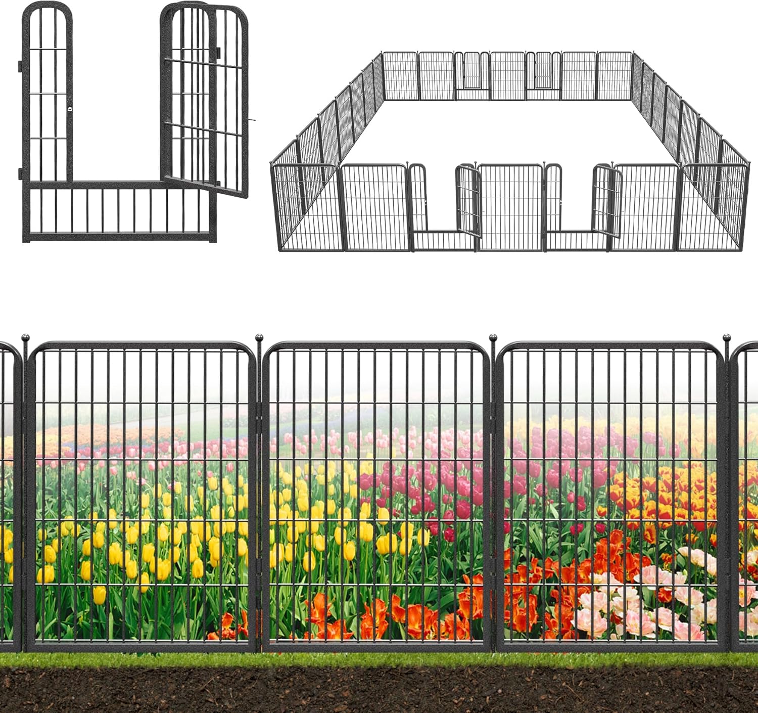 - Rust-proof & Sturdy Construction: Jhsomdr garden fence features double powder coated finish, rustproof, less maintenance, longer use. The metal fence panels are made of heavy duty iron and thick wire, no tearing, chewing, cracking and bending. The fence can work well for long time in bad weather