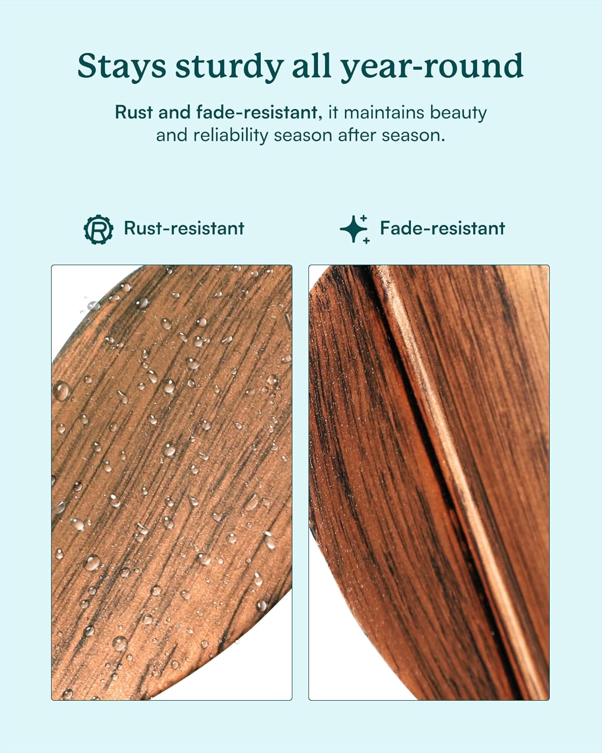 - CLASSIC OUTDOOR METAL DECOR: Made of sturdy metal with protective coating finishes. UV, RUST, and FADE RESISTANT. The all-season decorative spinner can be cleaned easily to keep its reflective shine and rustic appearance. Long-lasting use.