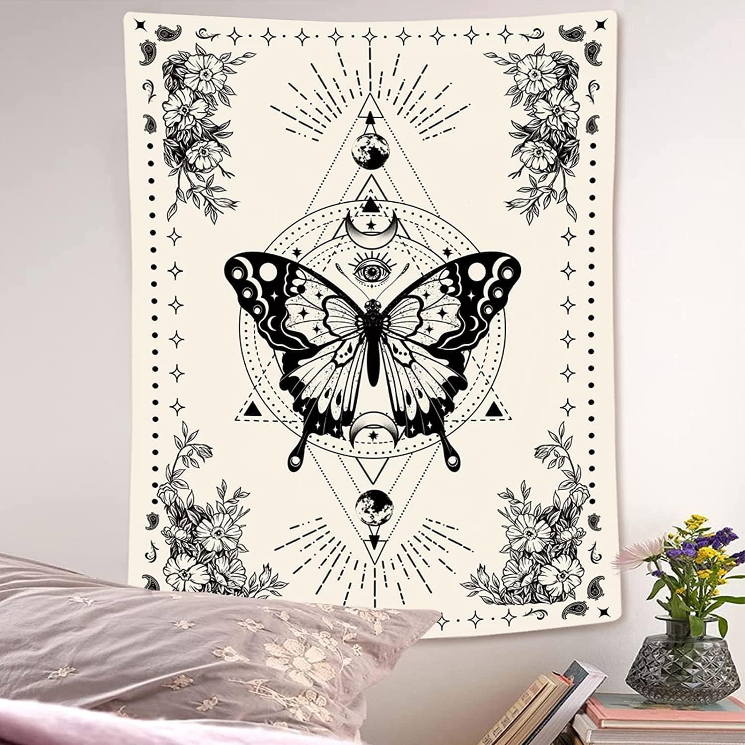 - Bohemian Butterfly Design: This tapestry showcases a beautifully intricate butterfly design with celestial and floral elements, creating a perfect blend of boho style and mysticism. It adds an artistic and calming atmosphere to any room, ideal for bedrooms, living rooms, or creative spaces.