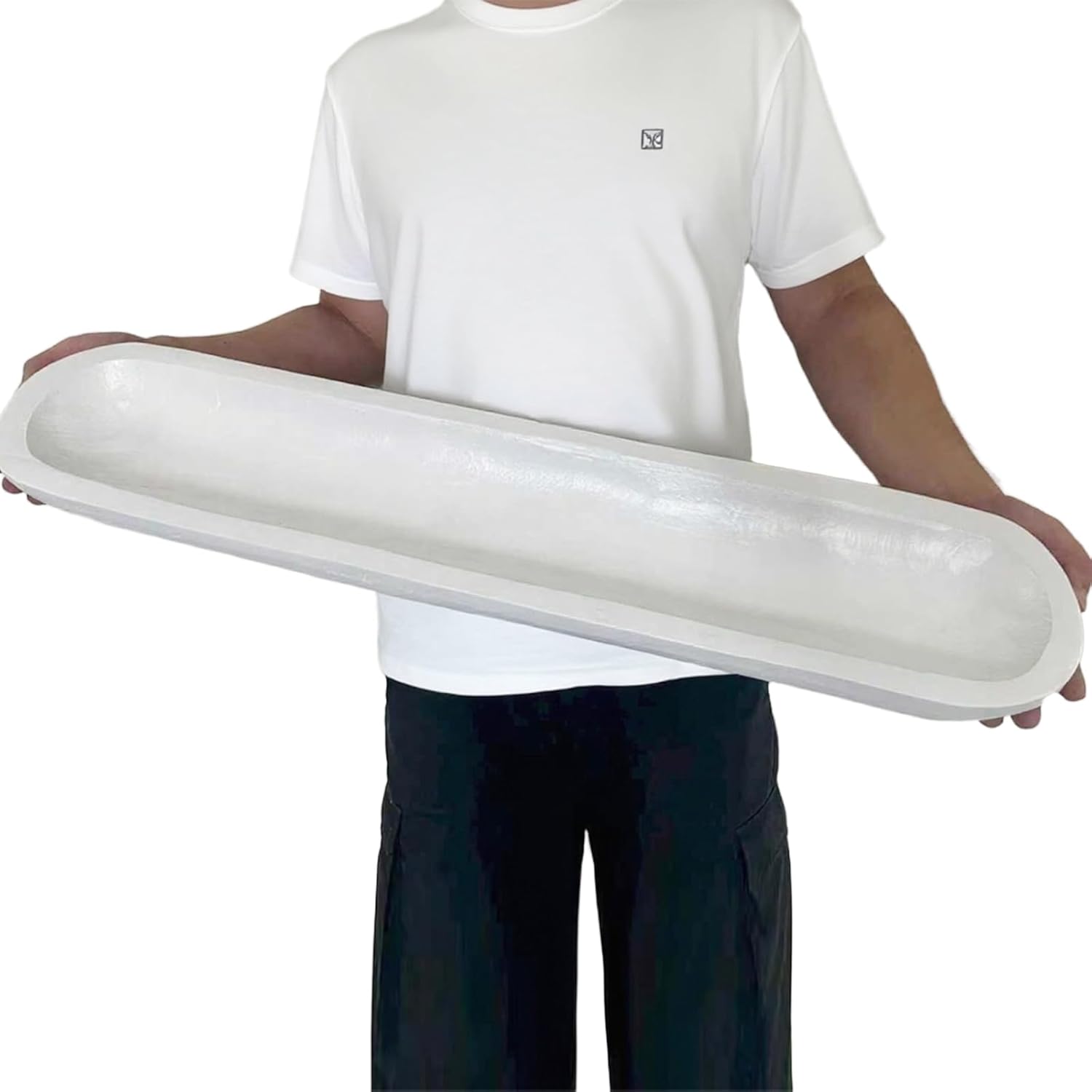 Wooden Dough Bowl Decor, Vintage Wooden Bowl Hand Carved Home Decor for Dining Table Center, Living Room, Kitchen Decor. (30inch white)