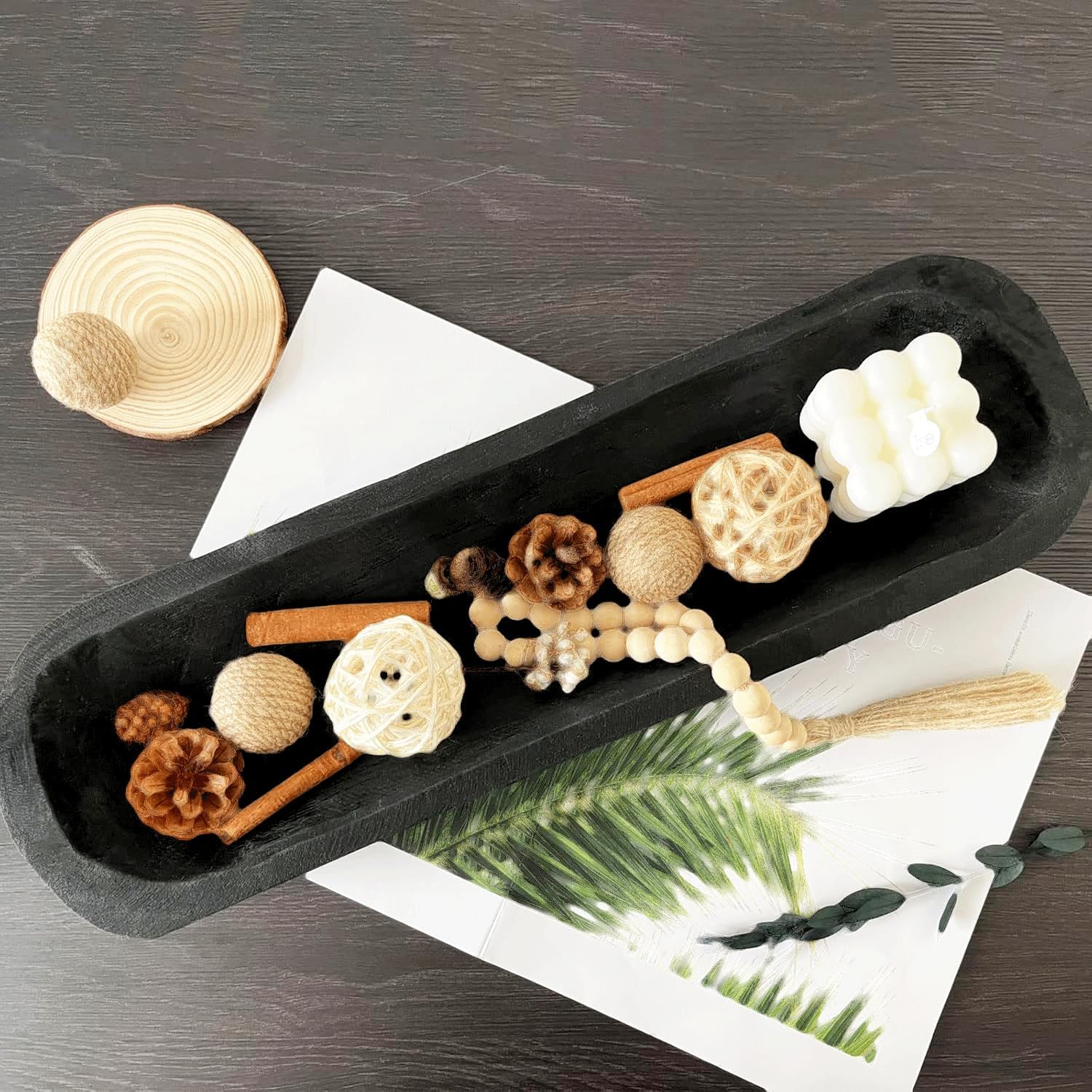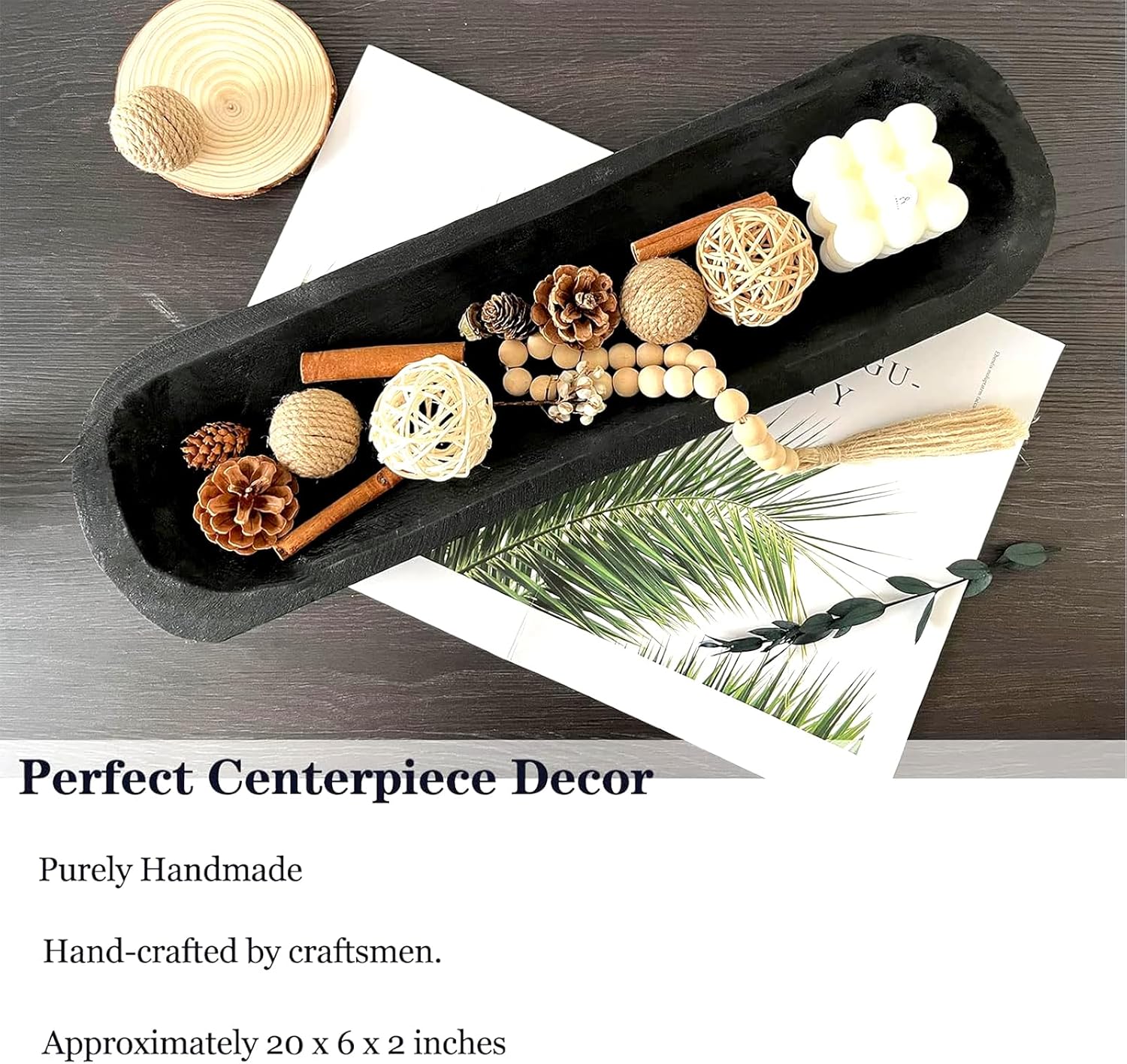 Wooden Dough Bowl Decor, Vintage Wooden Bowl Hand Carved Home Decor for Dining Table Center, Living Room, Kitchen Decor. (20inch black)
