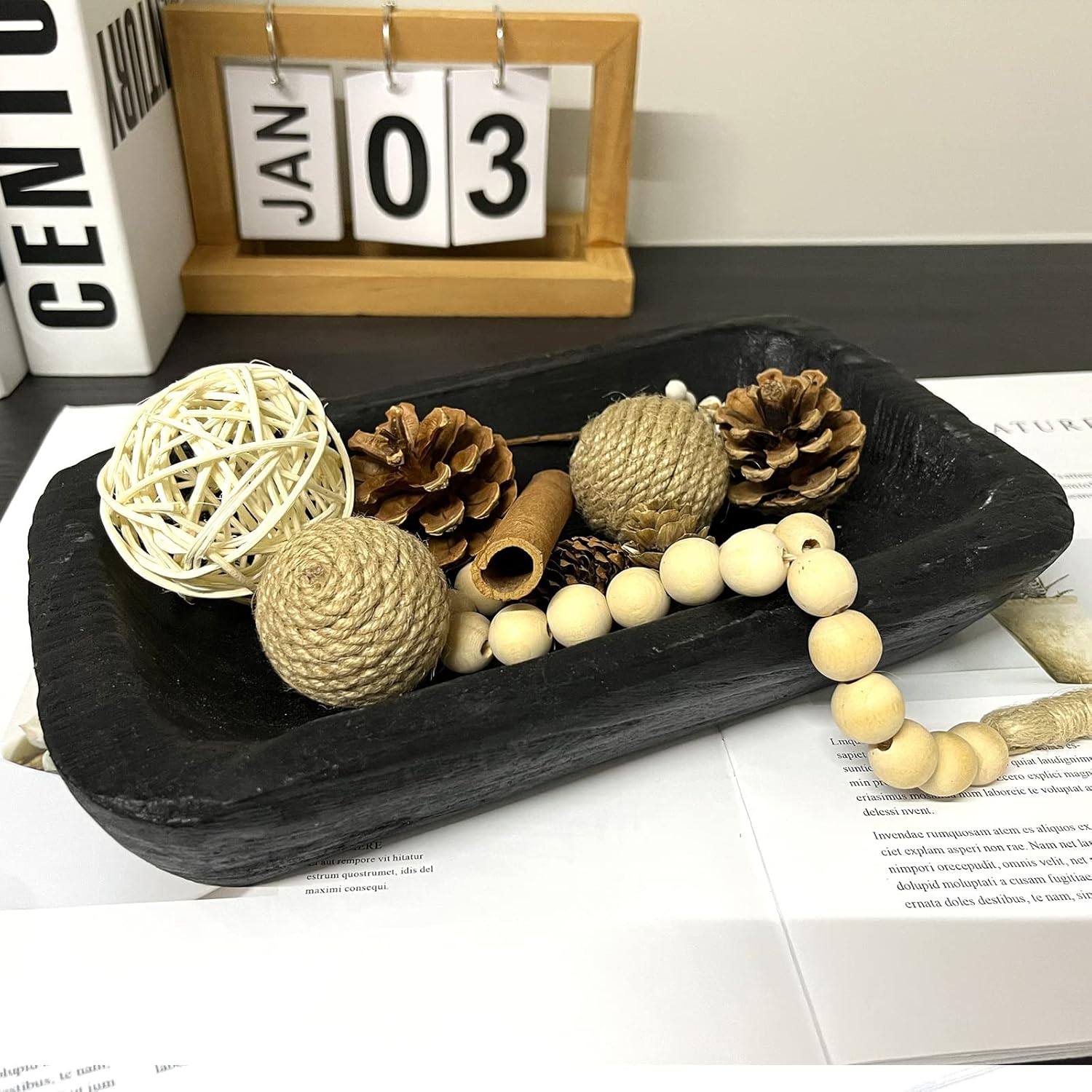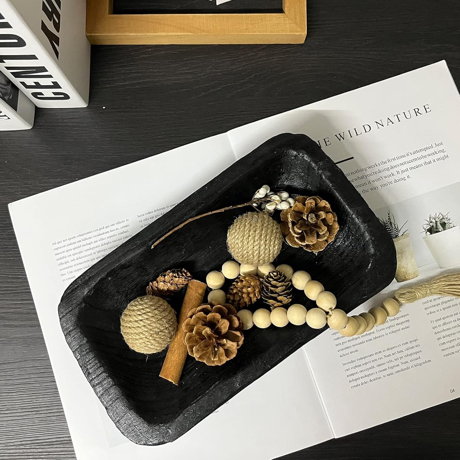 Wooden Dough Bowl Decor, Vintage Wooden Bowl Hand Carved Home Decor for Dining Table Center, Living Room, Kitchen Decor. (10inch black)