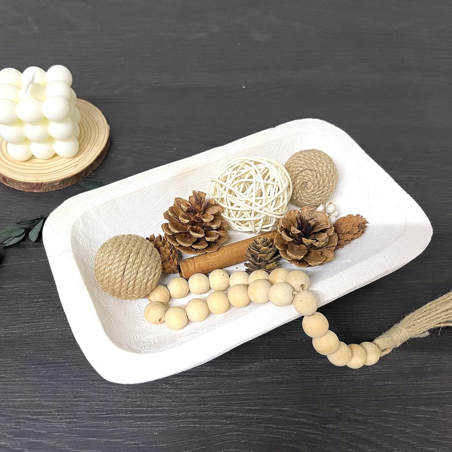 - Personalization Decoration: can add a rural charm to your home decoration. The wooden bowl is exquisite and unique, belonging to the decorative wooden bowl. The depth is just right, and can be used in rural, rural, modern, classical, minimalist, and decoration effects are all very good As a decoration, it can be paired with decorative balls, pine nuts, seashells, etc., or stored with fruits, nuts, bread, etc. (it is recommended to store food with food tissue and avoid direct contact with food)