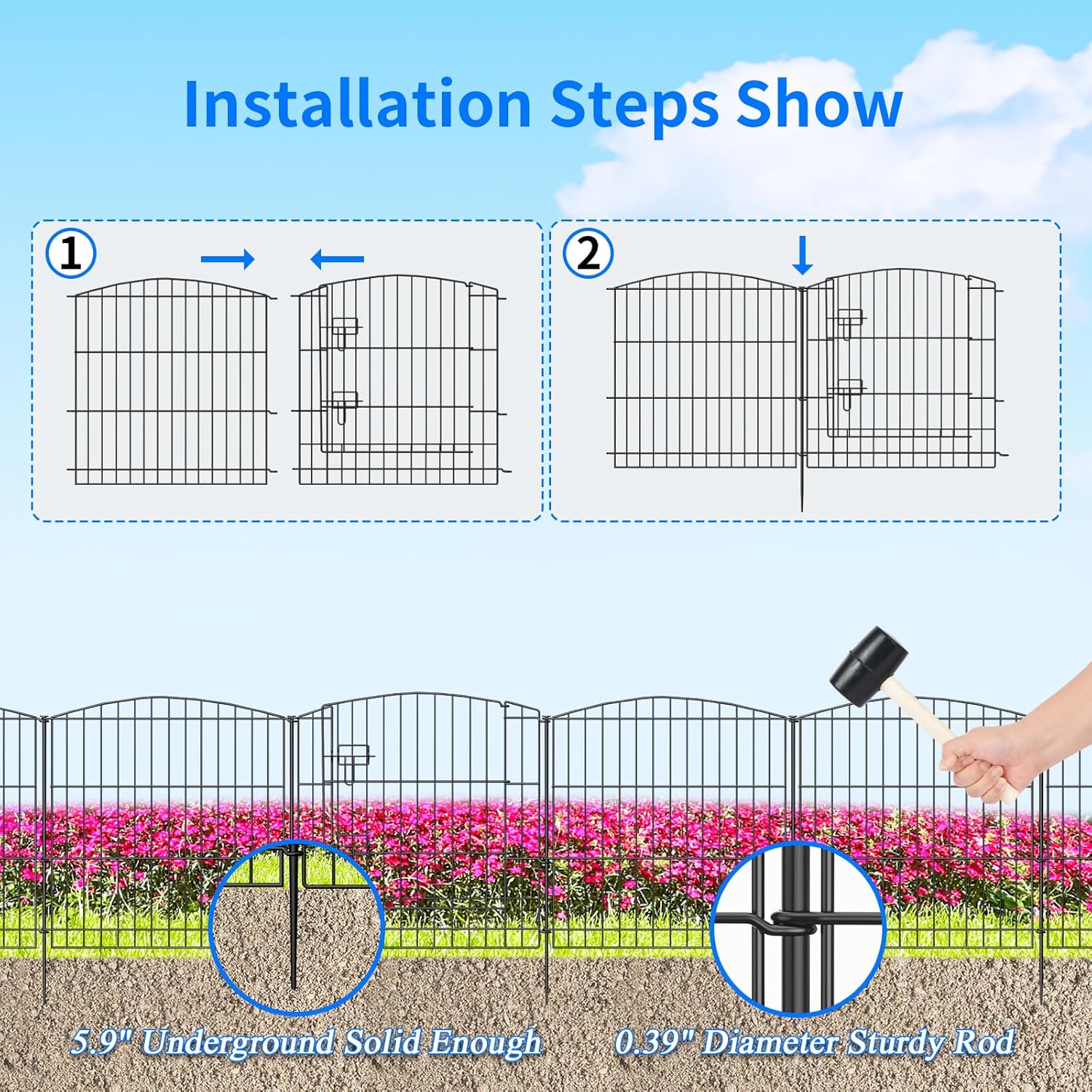 INJOPEXI Garden Fence 12 Panels 23.6ft (L)×24in (H) Decorative Garden Fences with 11 Fence Panels + 1 Gate Rustproof Wire No Dig Garden Fence Animal Barrier Fencing for Outdoor Backyard Patio - Black