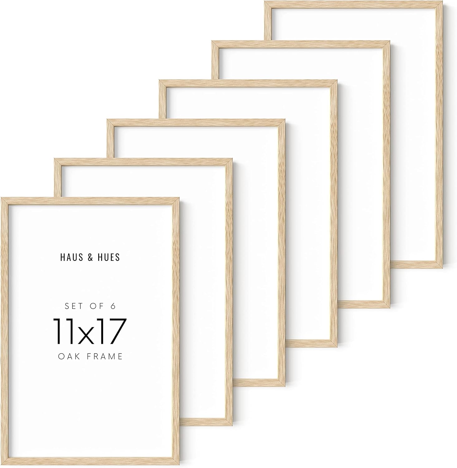 HAUS AND HUES Picture Frame - 6 Set Contemporary Wooden 11x17 inches, Beige Oak Frame