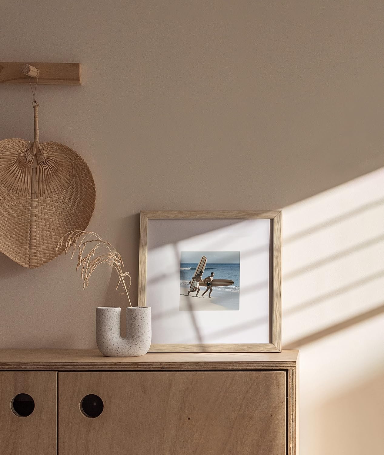 - SQUARE MATTED FRAME: Our 10 x 10 frame for wall is meticulously constructed using natural oak wood, known for its timelessness and durability. The slim profile of the square poster frame effortlessly blends into any interior decor, adding a contemporary touch. The clean lines and sleek design make the 10 by 10 frame a perfect choice for those seeking a stylish, understated display solution