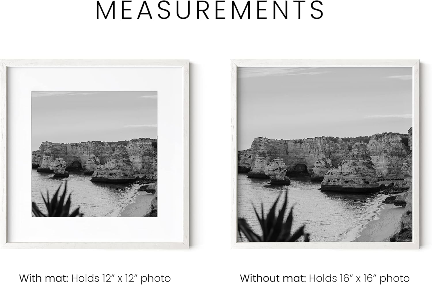 - FRAME POSTER WHITE WOOD FRAMES: The 16x16 picture frame with white mat showcases the detail of the oak wood, with its unique grain patterns and rich hues. Our matted frame white will enhance your photographs and artwork, while the durable construction of the thin frame ensures your memories are exhibited for years to come. Embrace the seamless blend of natural materials and contemporary design with our wooden picture frame sets white, bringing a touch of modernity to your cherished moments