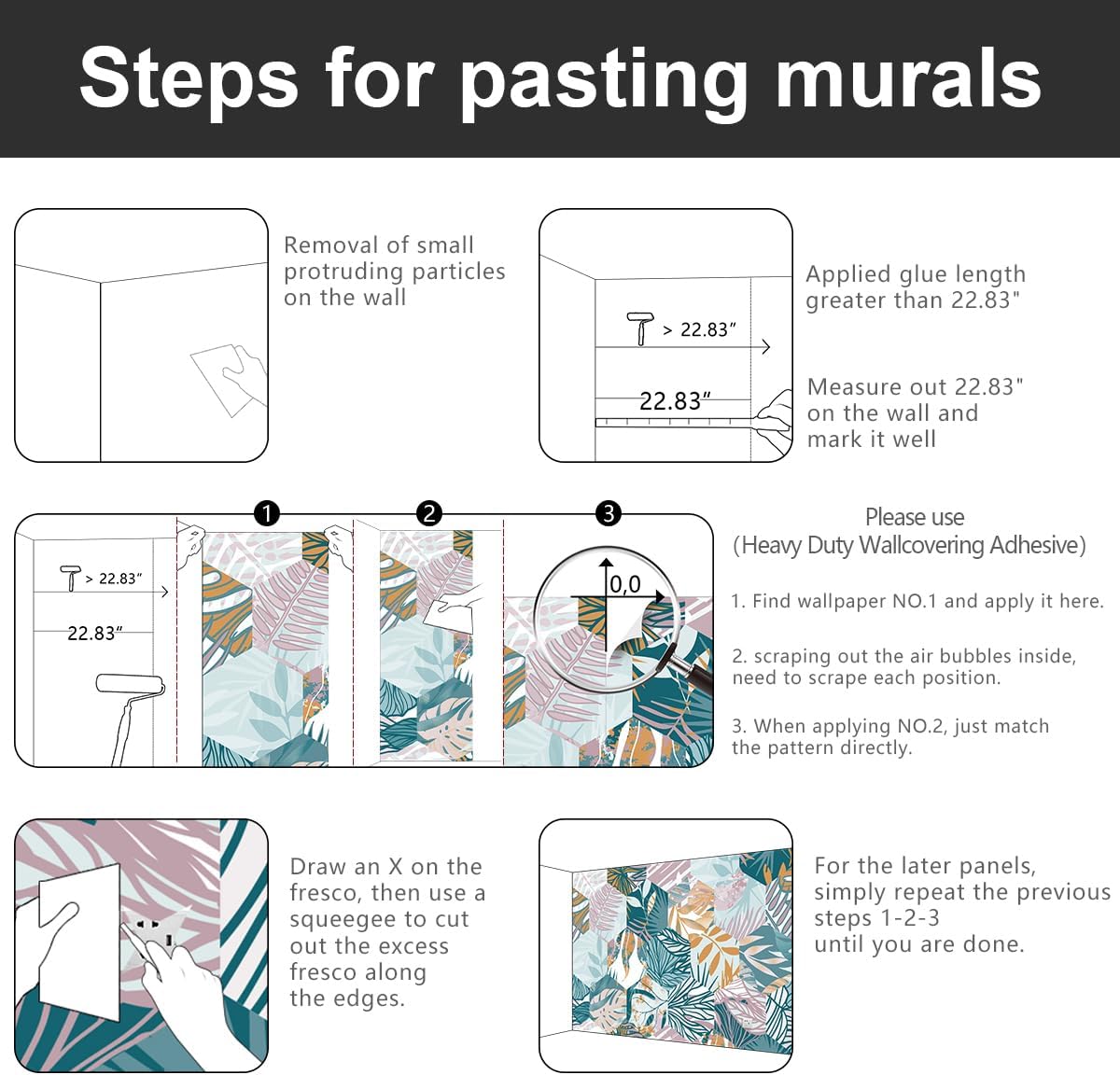 REQUIRED: You MUST purchase heavy-duty wallpaper adhesive separately. The mural cannot be installed without the proper adhesive and tools. Please consider this requirement before purchasing.