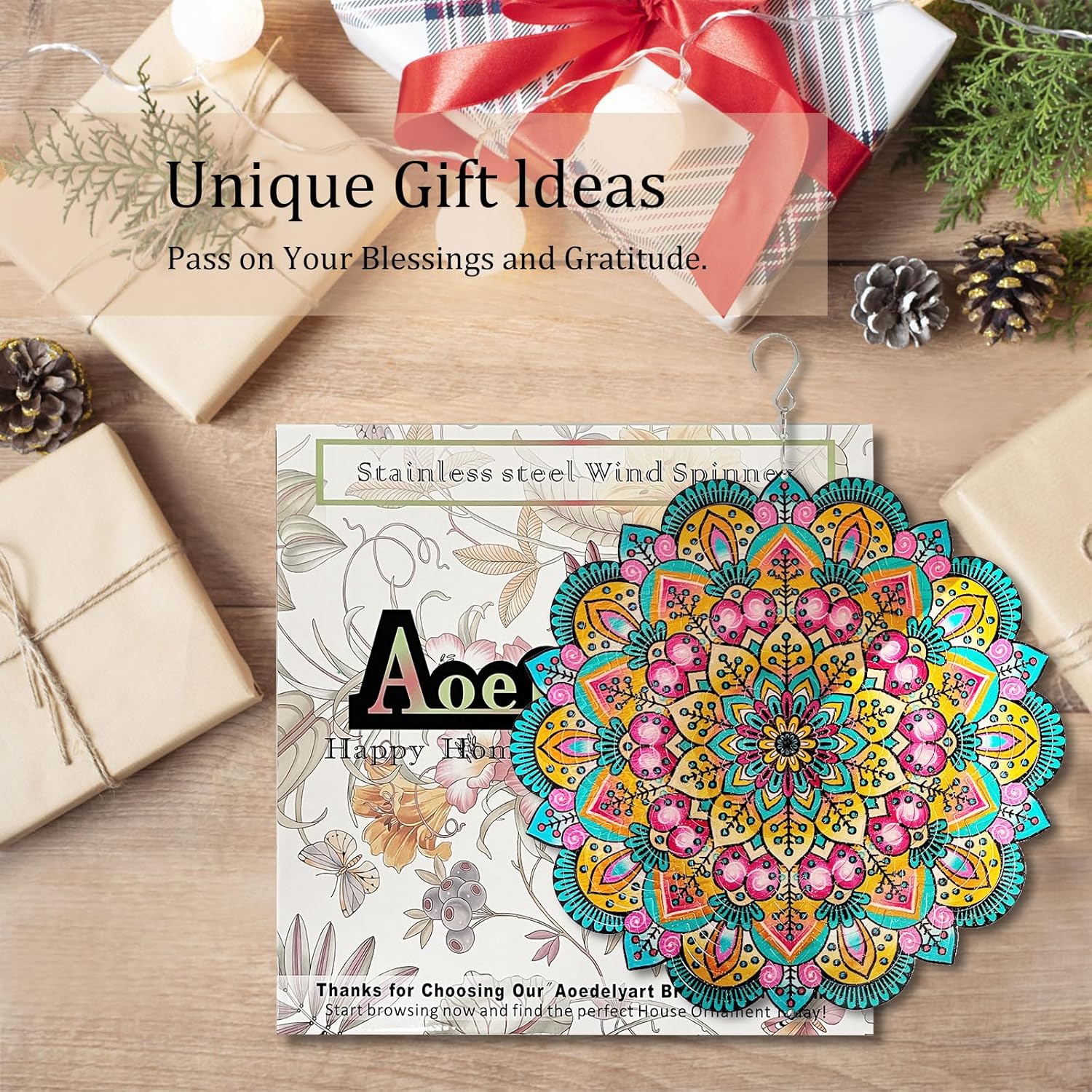 - ★【Widely used Mandala Wind Spinner Gifts】Suitable for indoor and outdoor use,wind spinners for outside can not only be used as decorations on indoor walls,window and chandeliers.You can also put Wind Sculptures on outdoor trees, balconies,pools,courtyards,and gardens as part of gardening decoration.It can also be given to your family and friends as an exquisite lucky gift on Housewarming,Mother's Day,New Year,Anniversary,Father's Day,Birthday,Christmas and other festivals.
