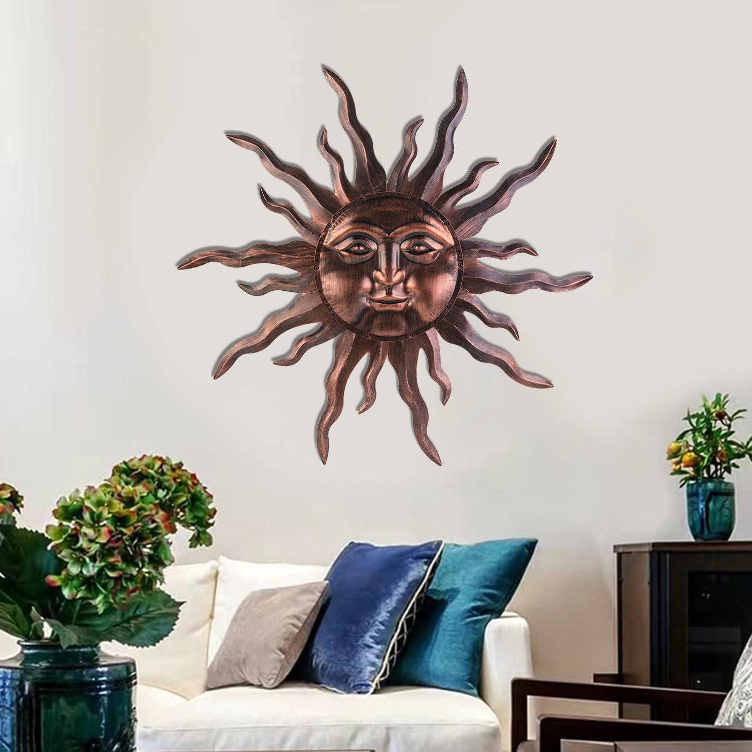 - 【High Quality Metal Wall Art】Each metal sun face wall decoration is individually handcrafted, unique and original. Made of premium metal and high grade paint coating, it can withstand all types of weather conditions, is durable, weather resistant, water resistant and does not fade or rust easily.