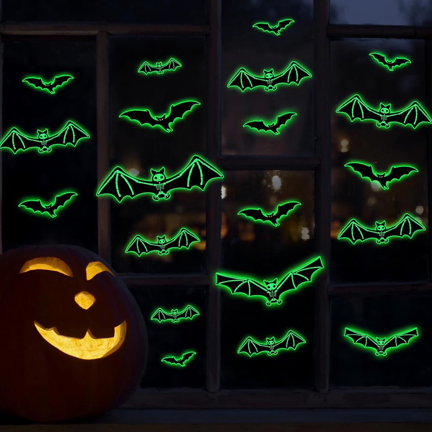 - Package Content: You will receive 3 Halloween glow-in-the-dark skeleton bat stickers, size 7.9*11.8inch, with different sizes and shapes of bats, sufficient quantity and various patterns to meet your Halloween decoration needs