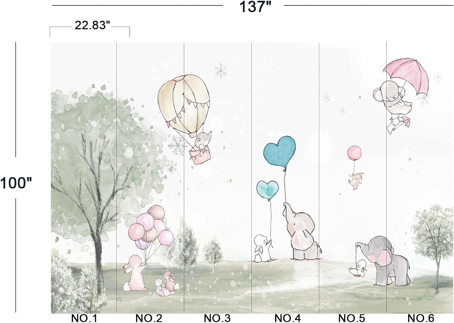 Cartoon Elephant Rabbit Balloon Nursery Wall Mural Wallpaper 137" x 100"
