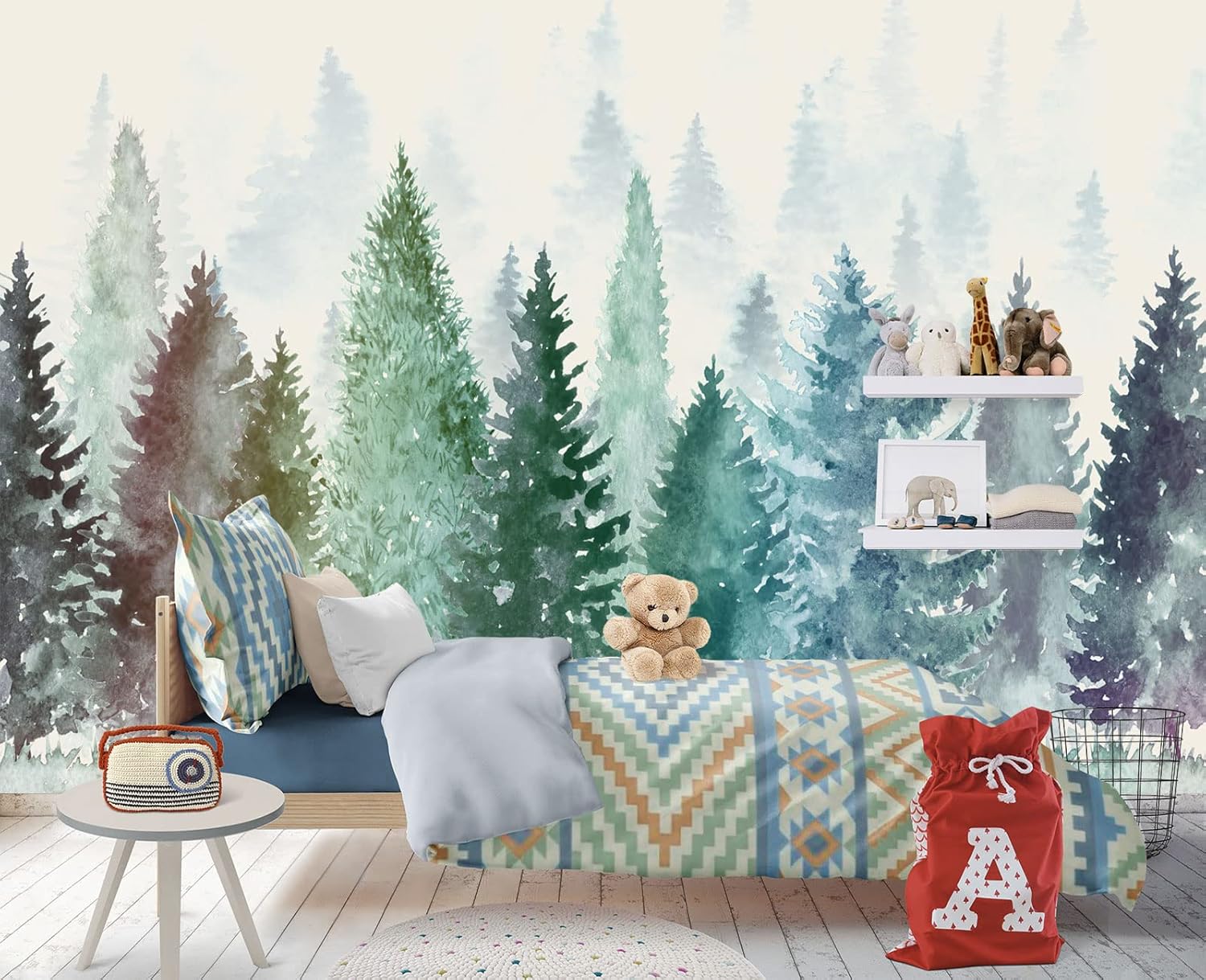 Colorful Watercolor Forests Children's Nursery Wall Mural Wallpaper 178" x 117"