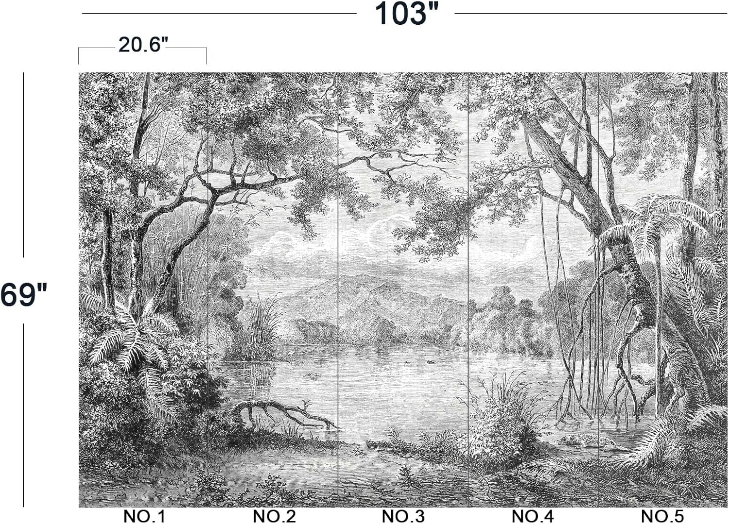 Black and White Tropical Rainforest Wall Mural Wallpaper for Bedroom 103" x 69"