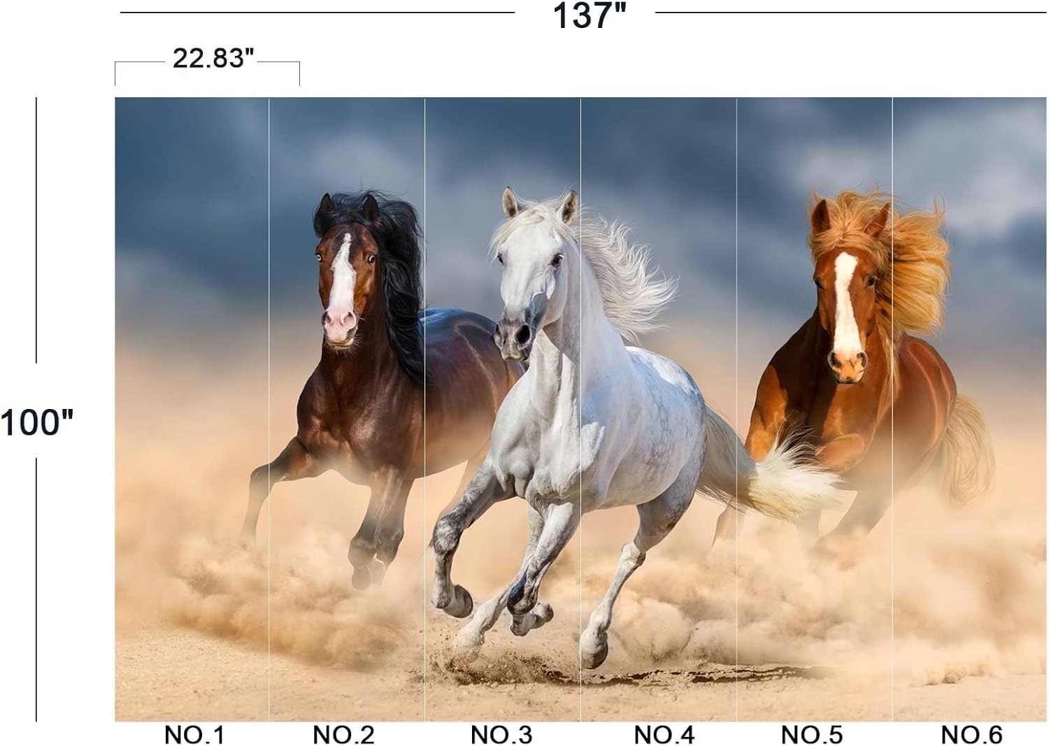 Three Running Horses Chinoiserie Wall Mural Wallpaper for Bedroom 137" x 100"