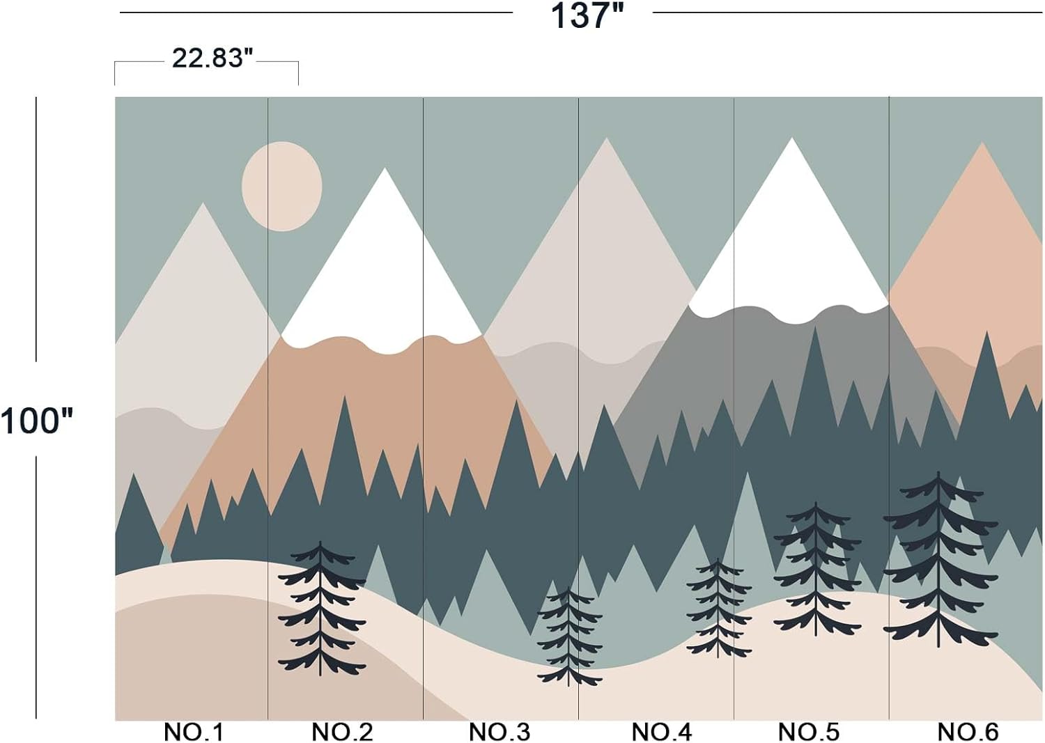 - The size of the wallpaper is 137" wide x 100" high and divided into 6 panels.
