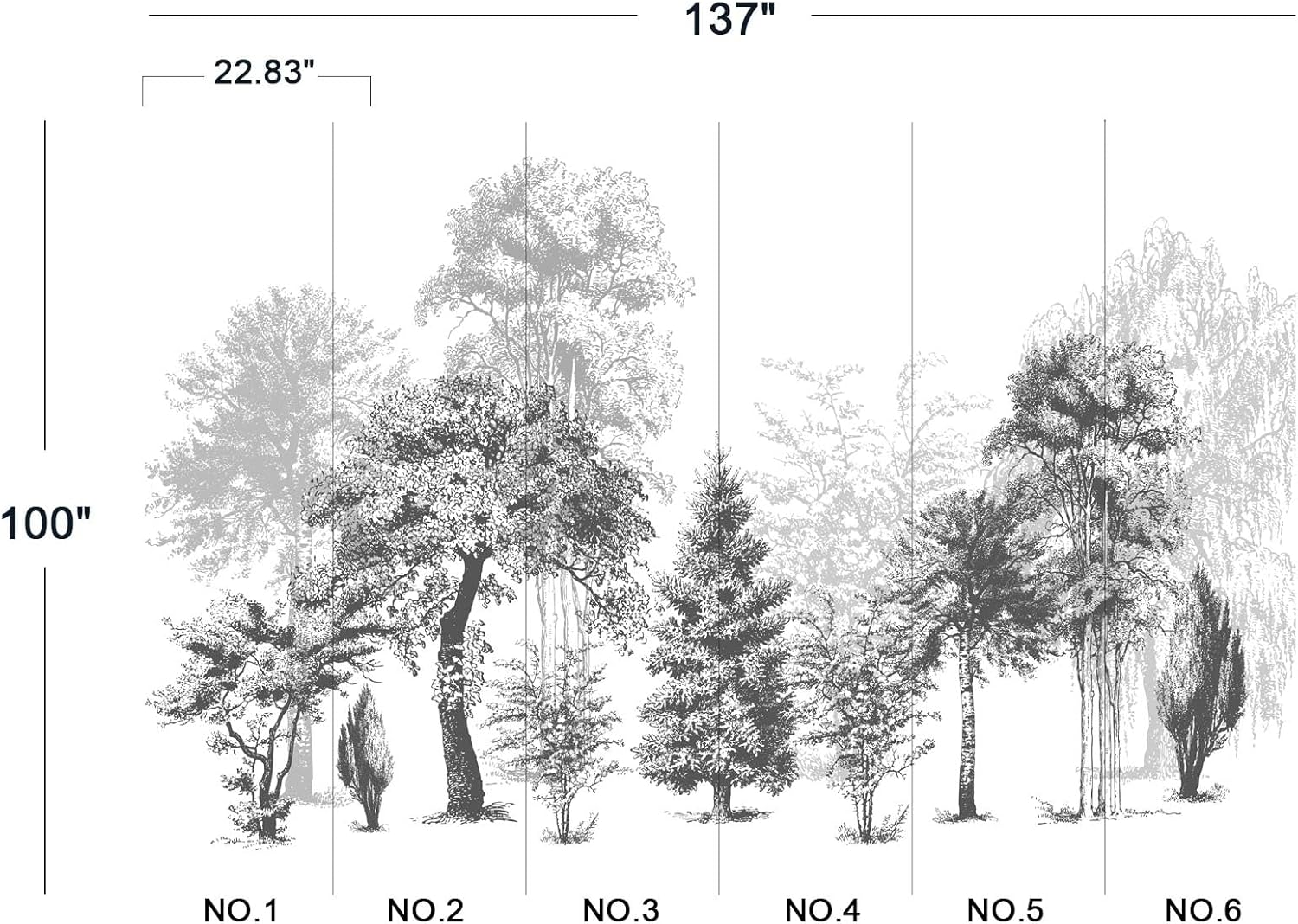 - The size of the wallpaper is 137" wide x 100" high and divided into 6 panels.
