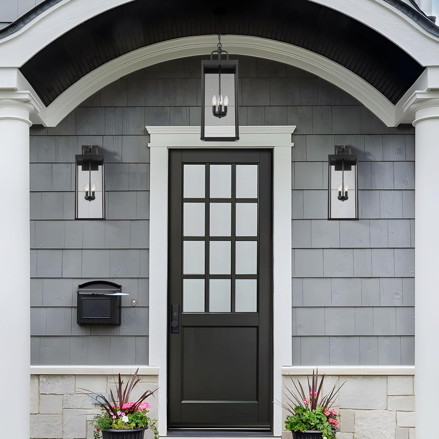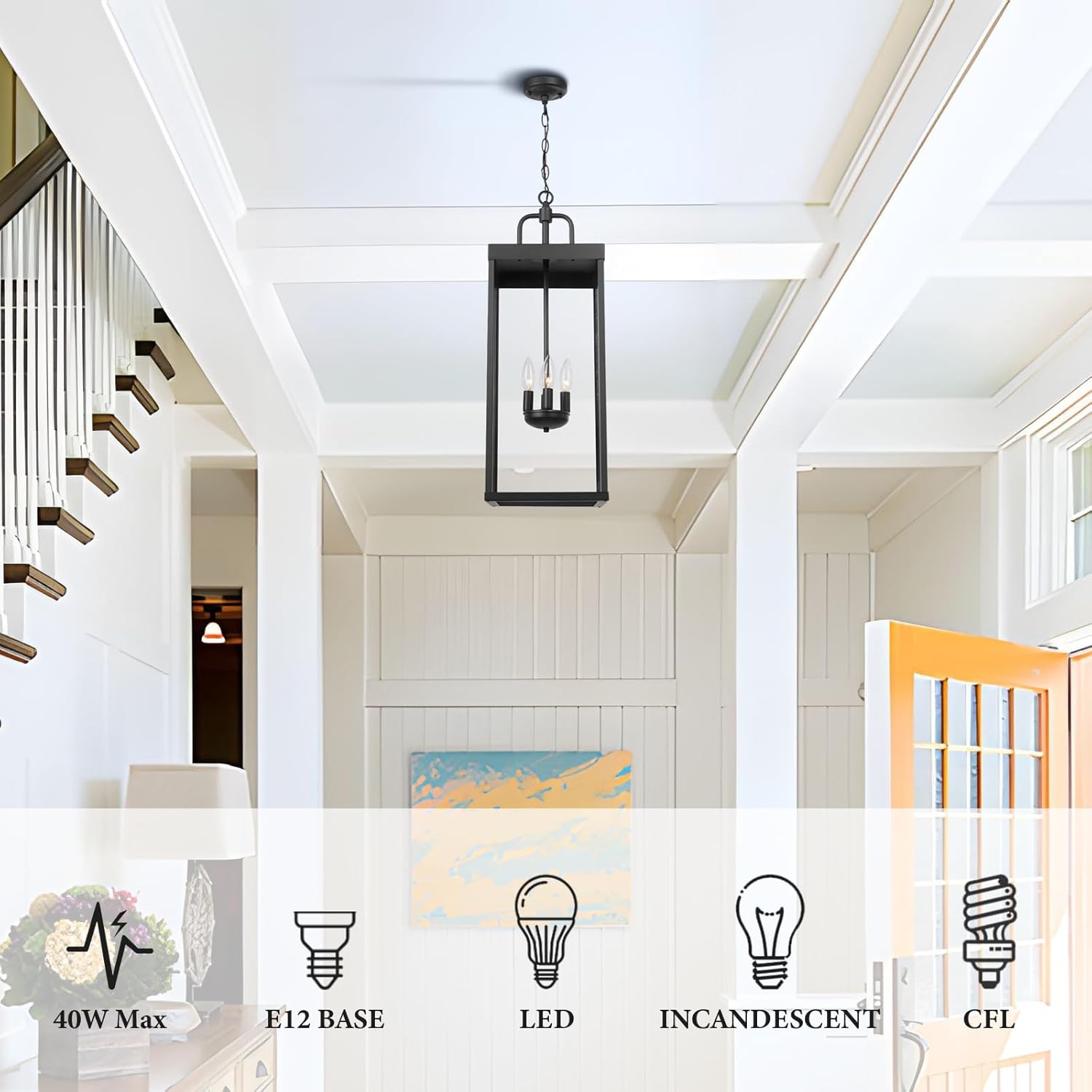 Large Outdoor Pendant Lantern Light Fixture for Front Porch, 28 Inch 4-Light Black Exterior Hanging Chandelier with Clear Glass, Outdoor Indoor Pendant Lamp for Patio, Gazebo, Entryway, Doorway